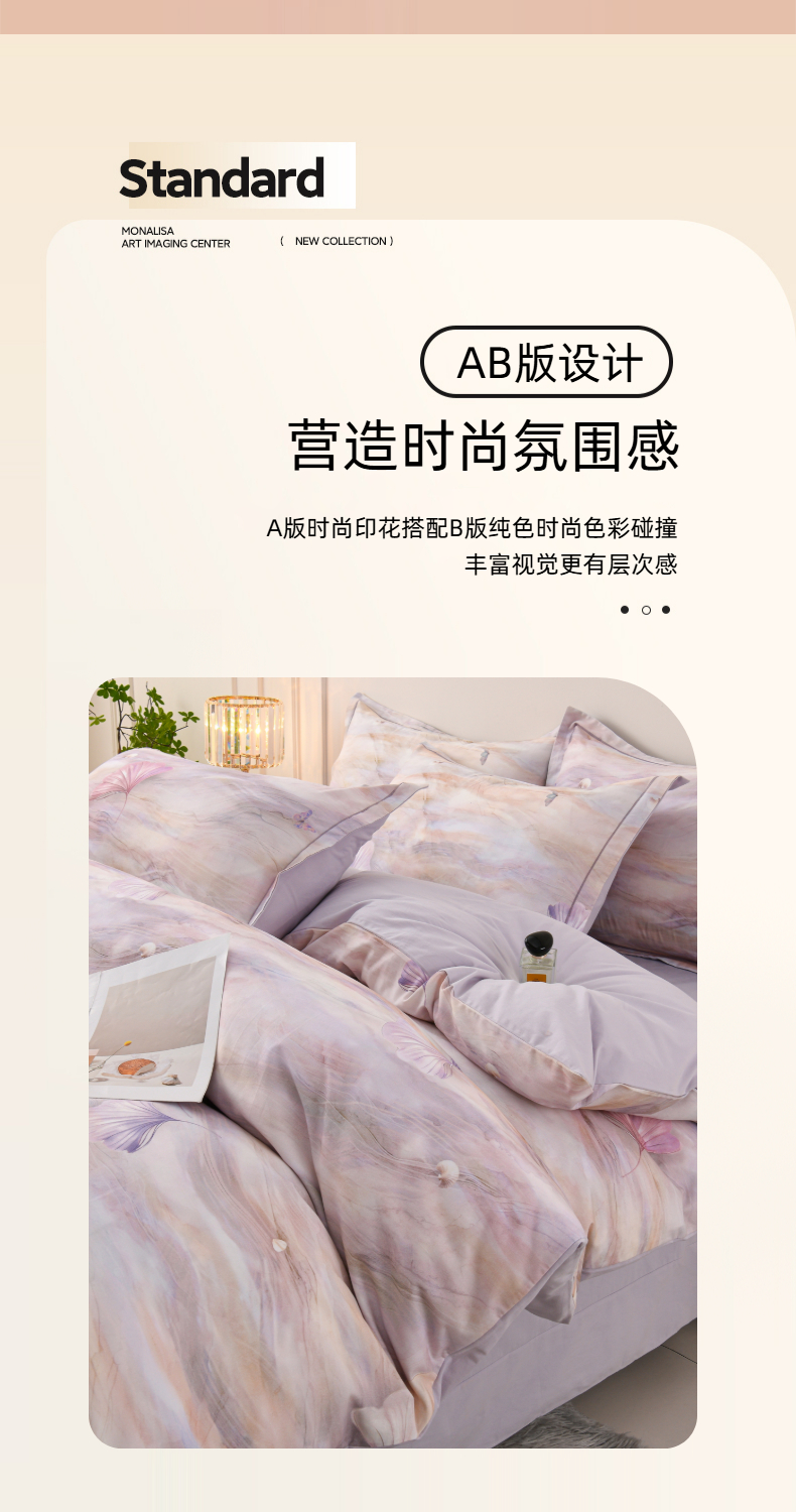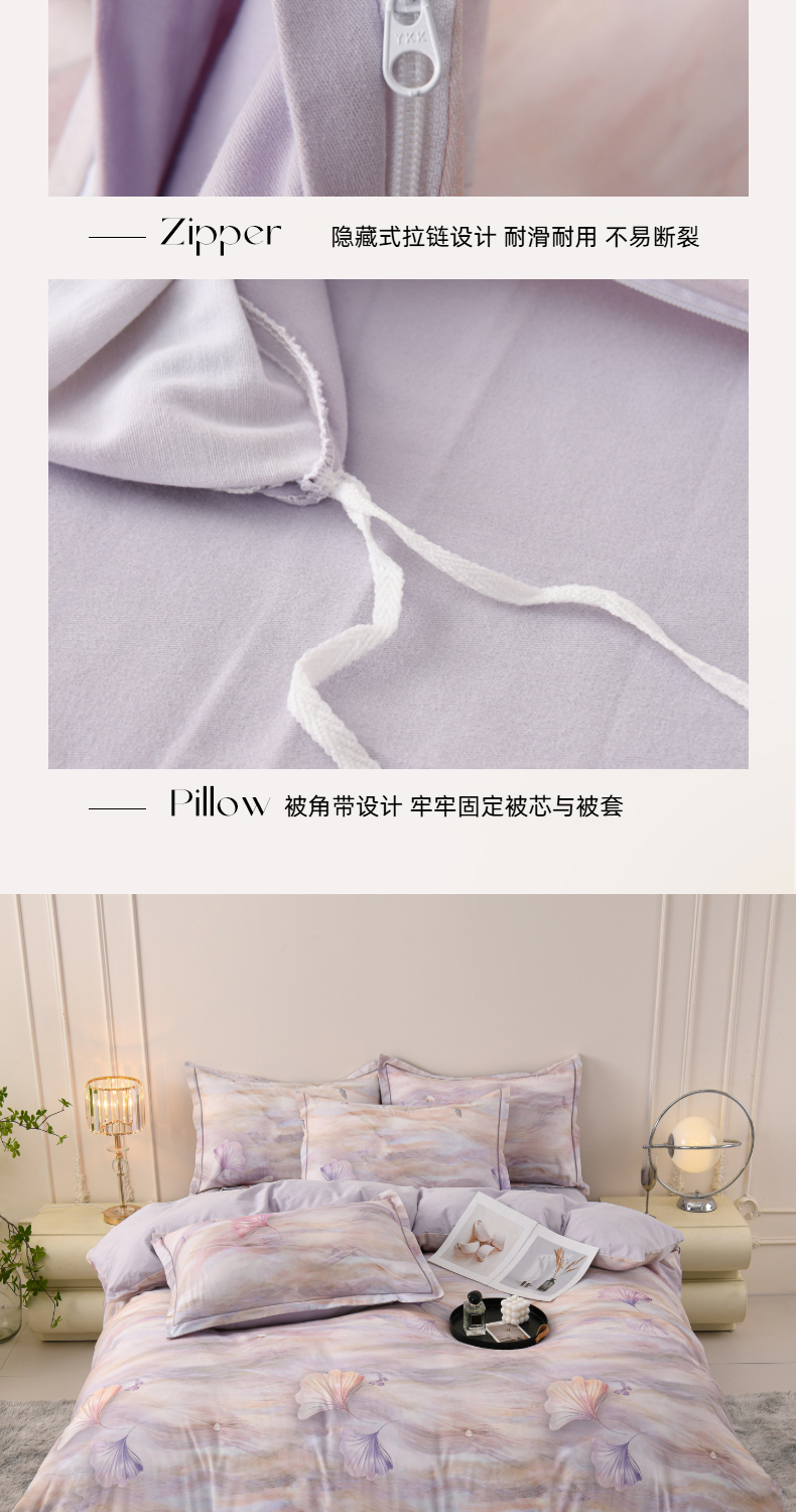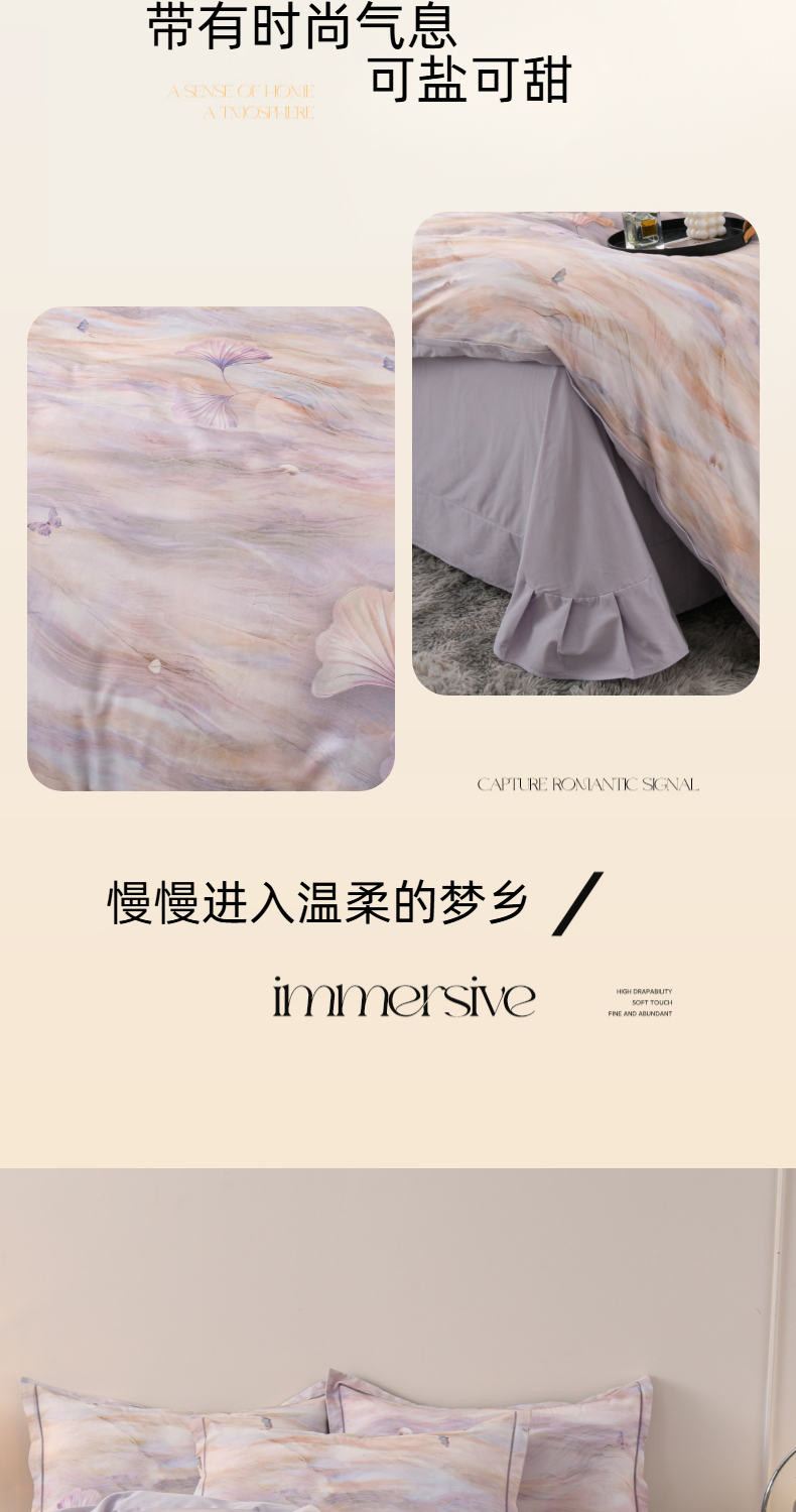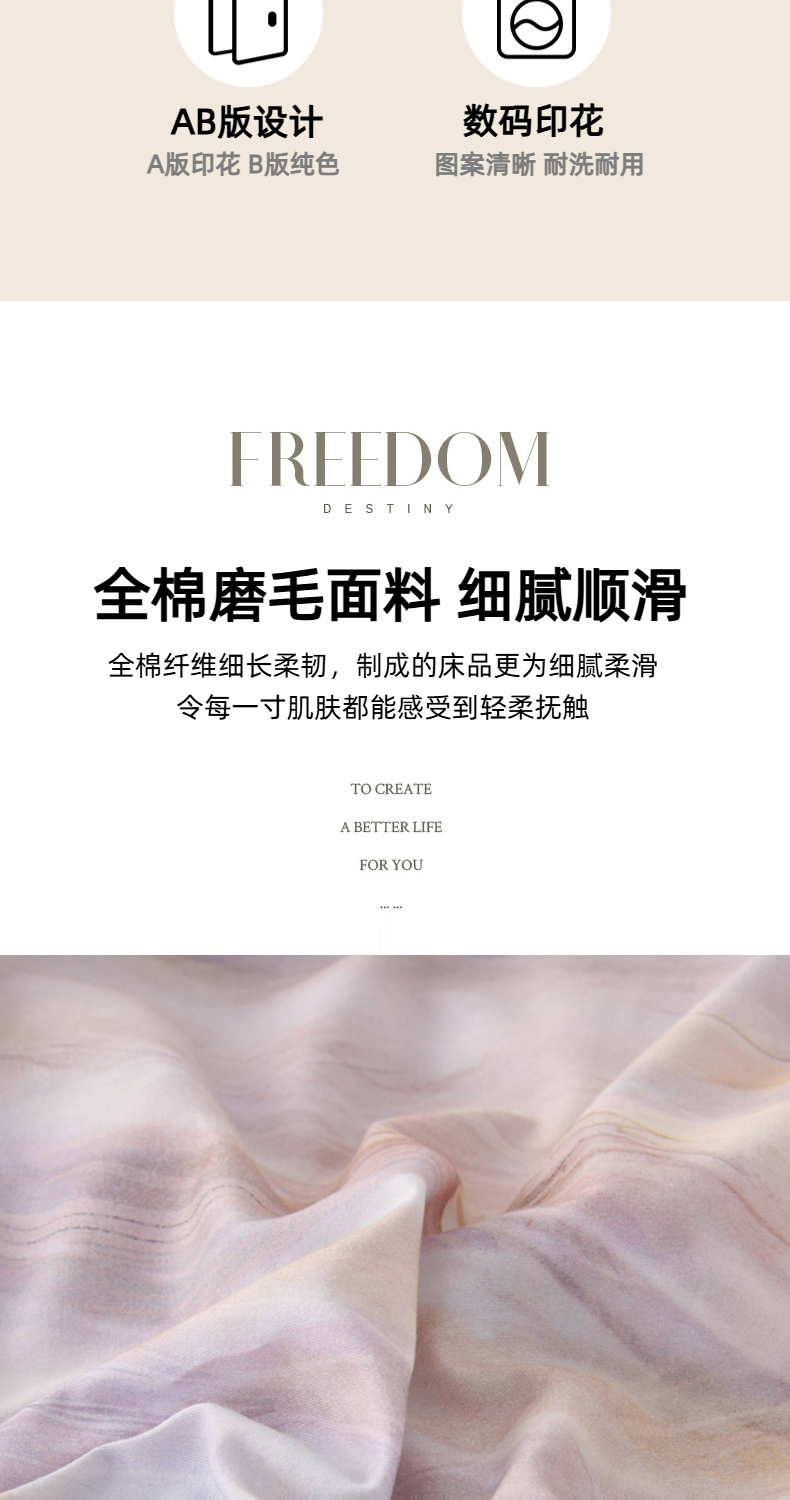 商品名称:润淳家居 2025新款全棉生态磨毛数码印花四件套 霁雪 紫