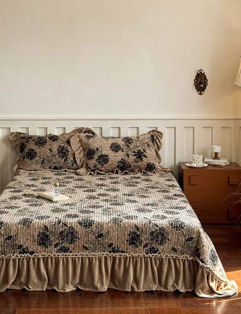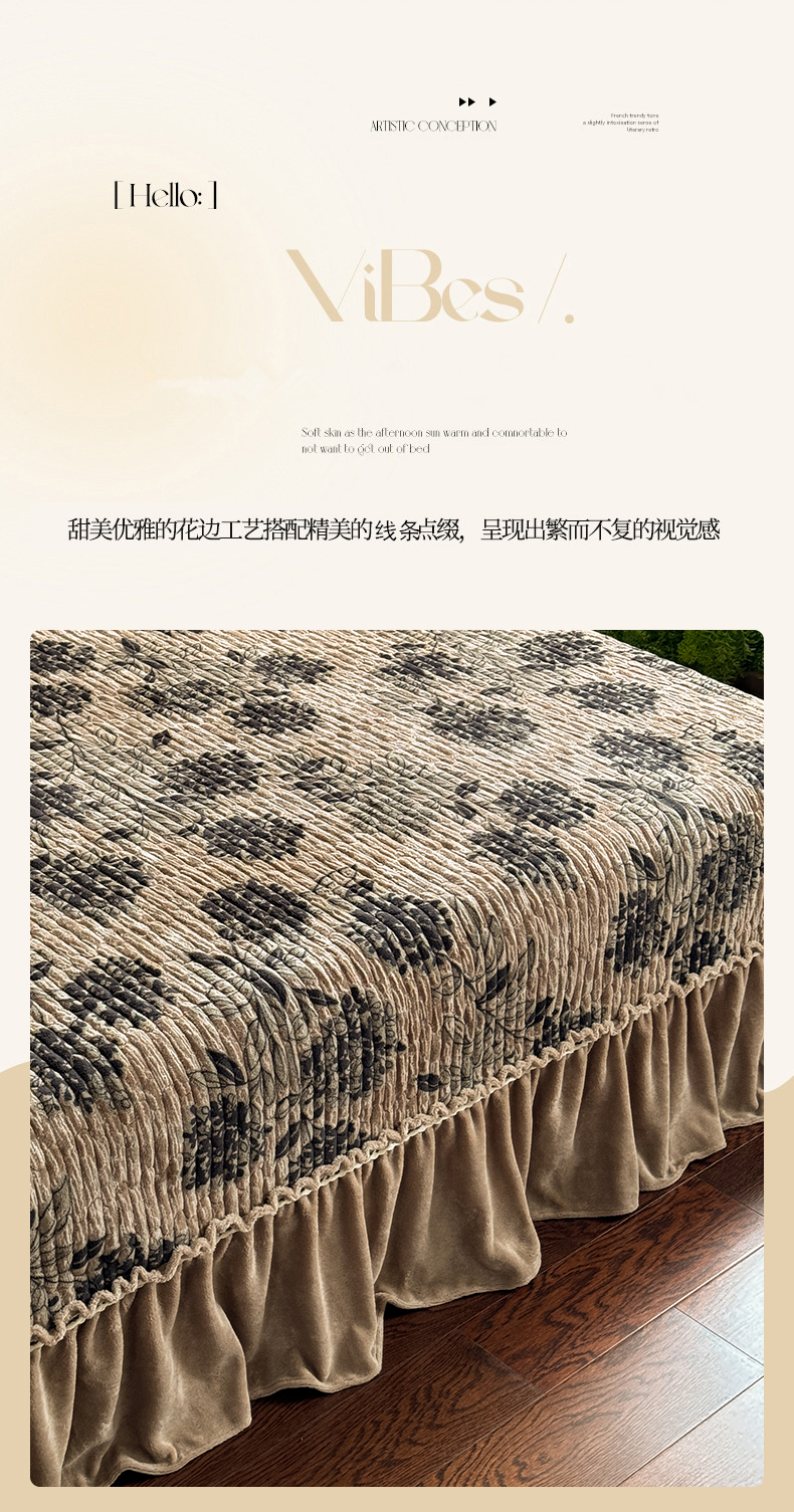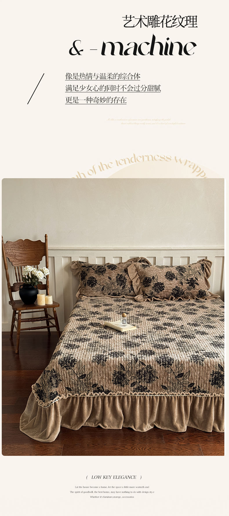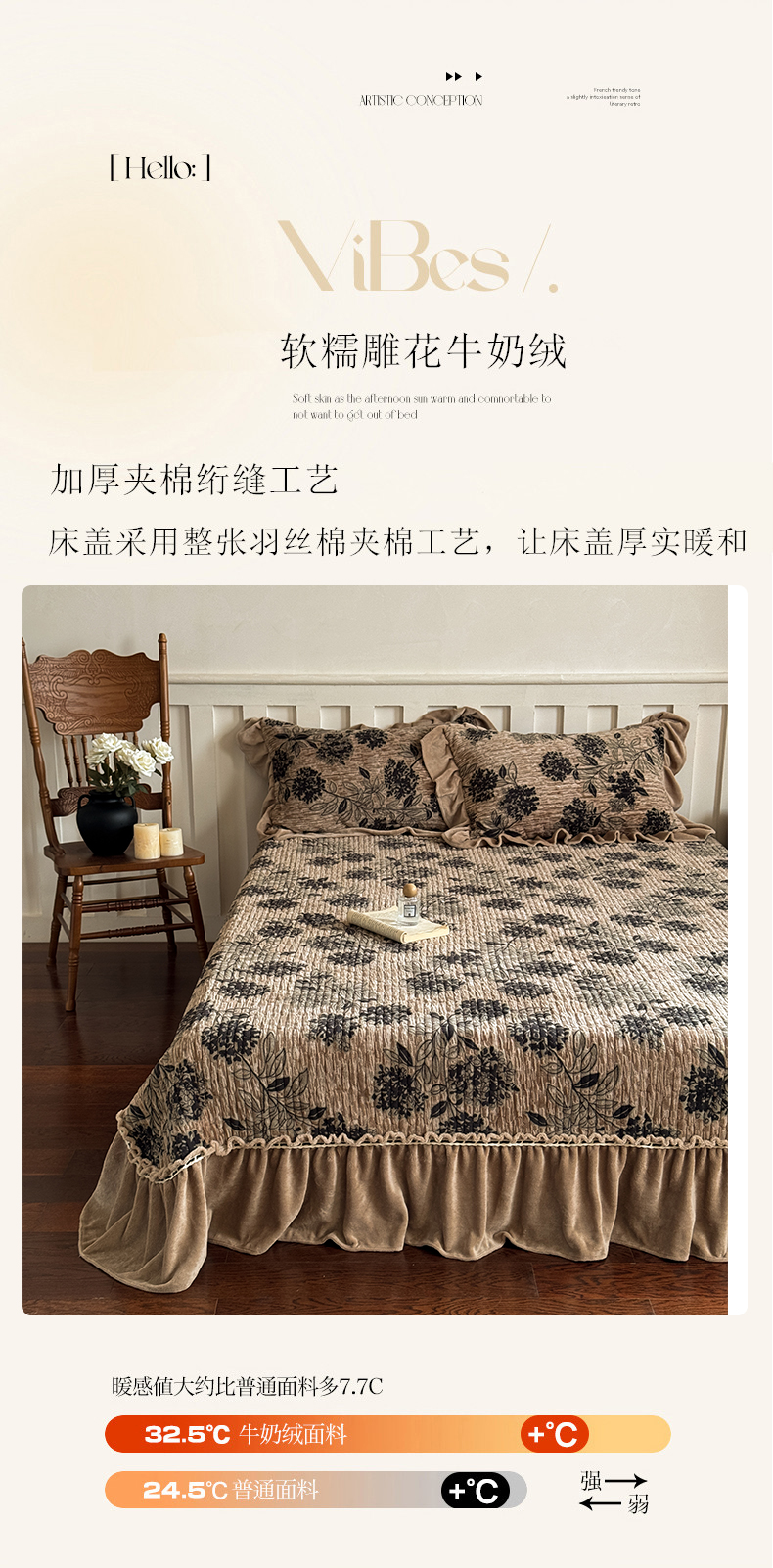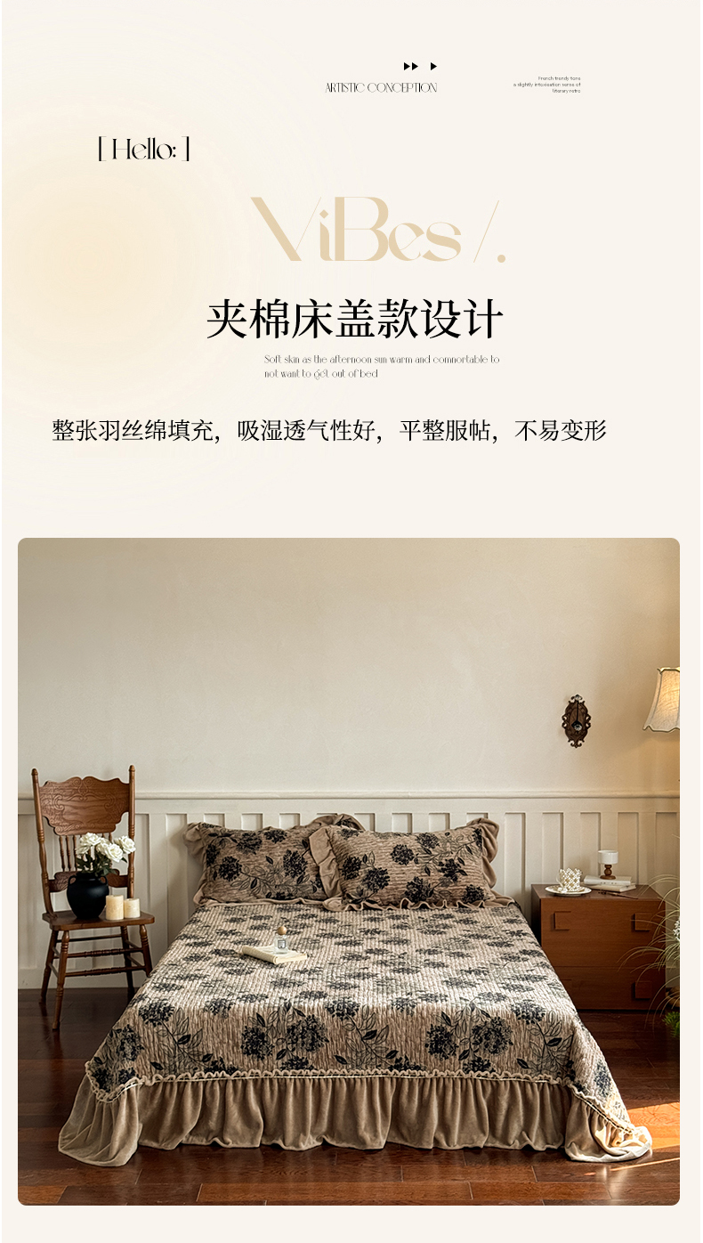 花香四季家纺 2025新款全消光牛奶绒夹棉绗缝床盖床垫子单件三件套 秘境