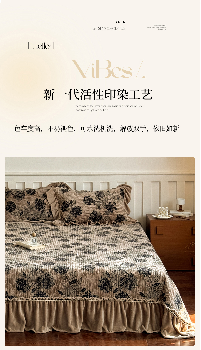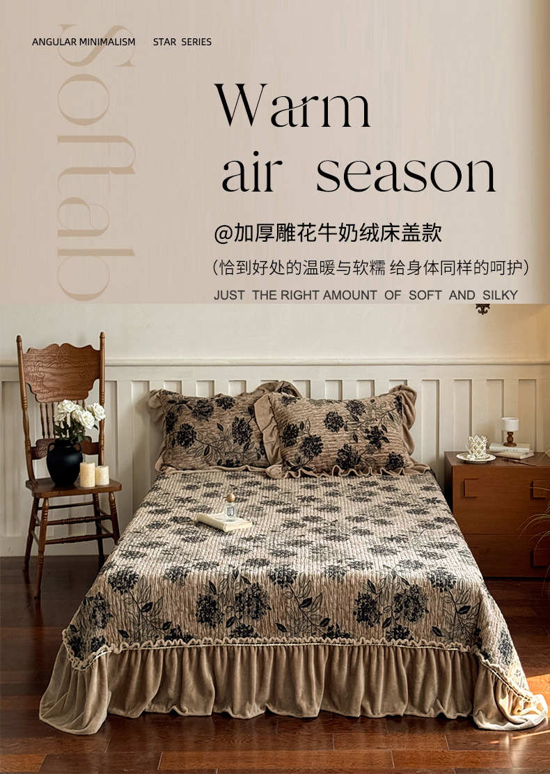 • 91家纺网 家纺一手货源 找家纺 花香四季家纺 2025新款全消光牛奶绒夹棉绗缝床盖床垫子单件三件套 秘境