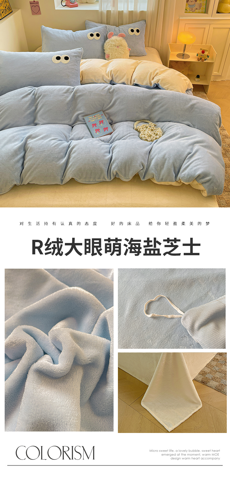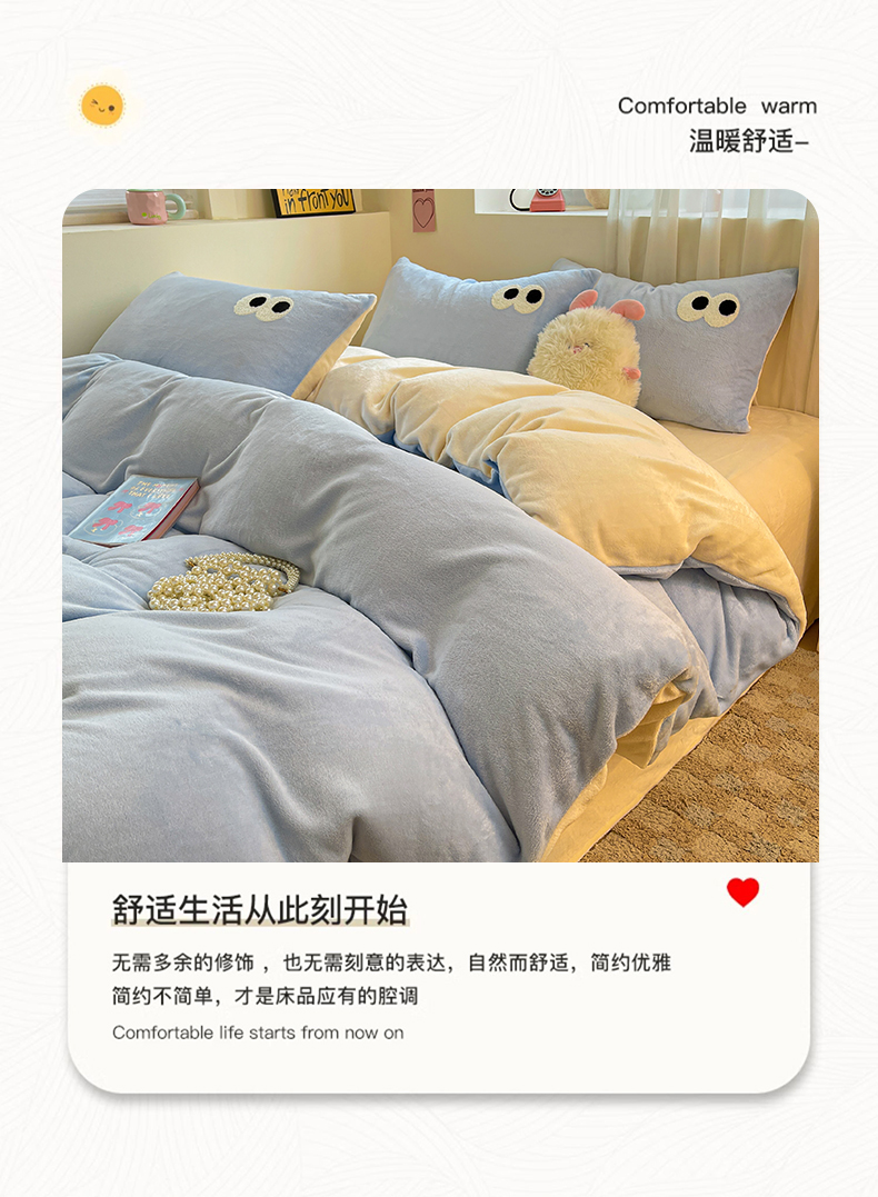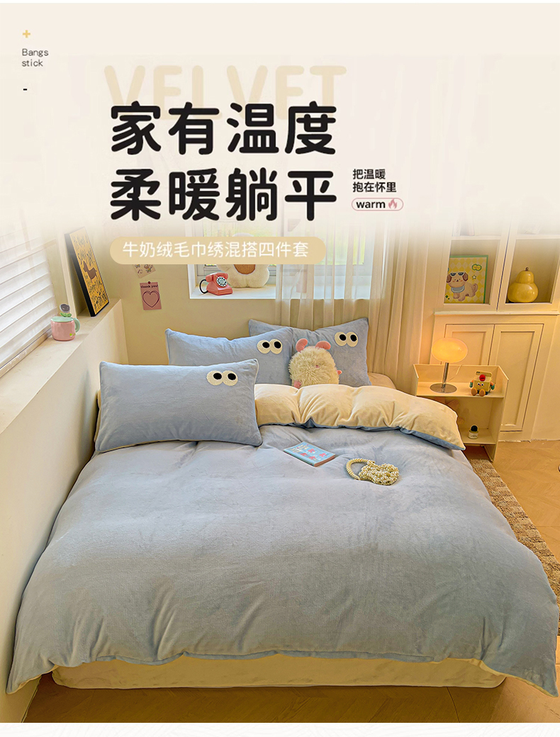 当前位置: 91家纺网 > 商品网购 > 床品套件 > 四件套 > 牛奶绒四件套 > 雨洋家纺 2025新款牛奶绒双面毛巾绣四件套-大眼萌系列 R绒大眼萌黄黄粉格