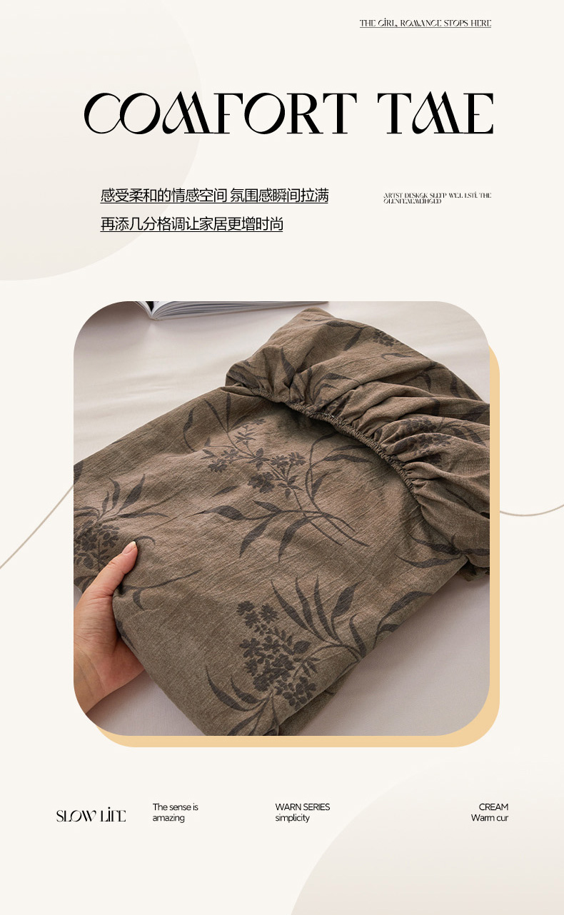 • 91家纺网 家纺一手货源 找家纺 卢赛尔 2025新款高克重皱皱复古原麻单床笠床笠三件套 南栀羽