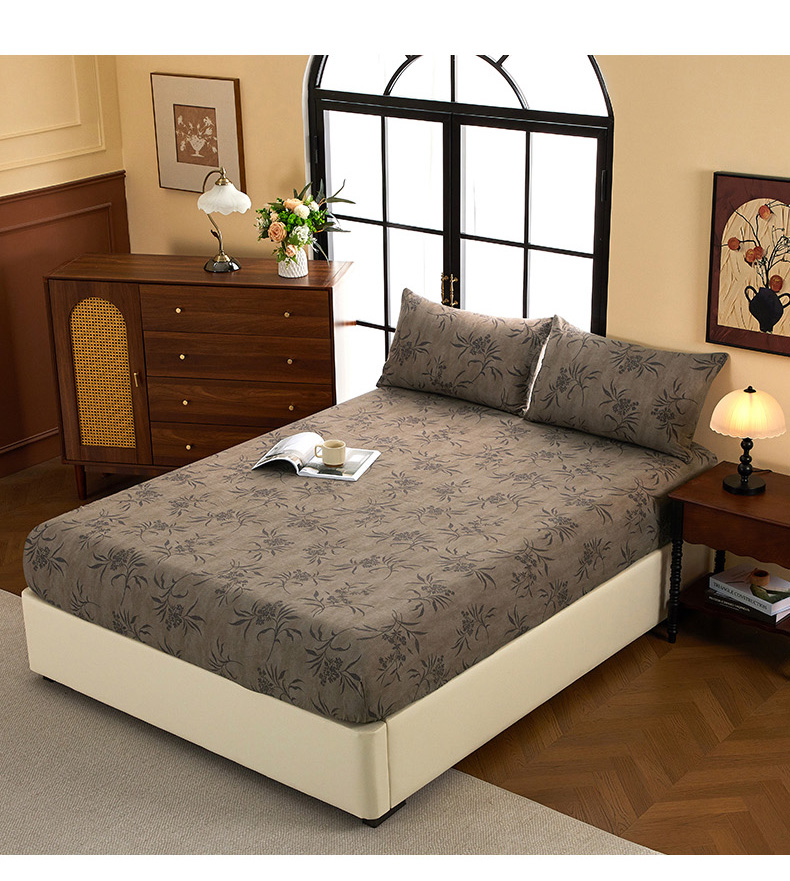 (总)卢赛尔 2025新款印花加厚原麻宝宝绒双拼保暖床盖款三件套,草芙蓉,花眠,凉墨,南栀羽,青千雪,森屿