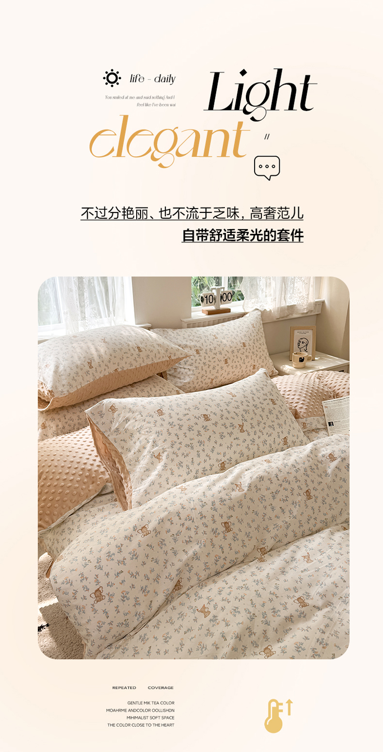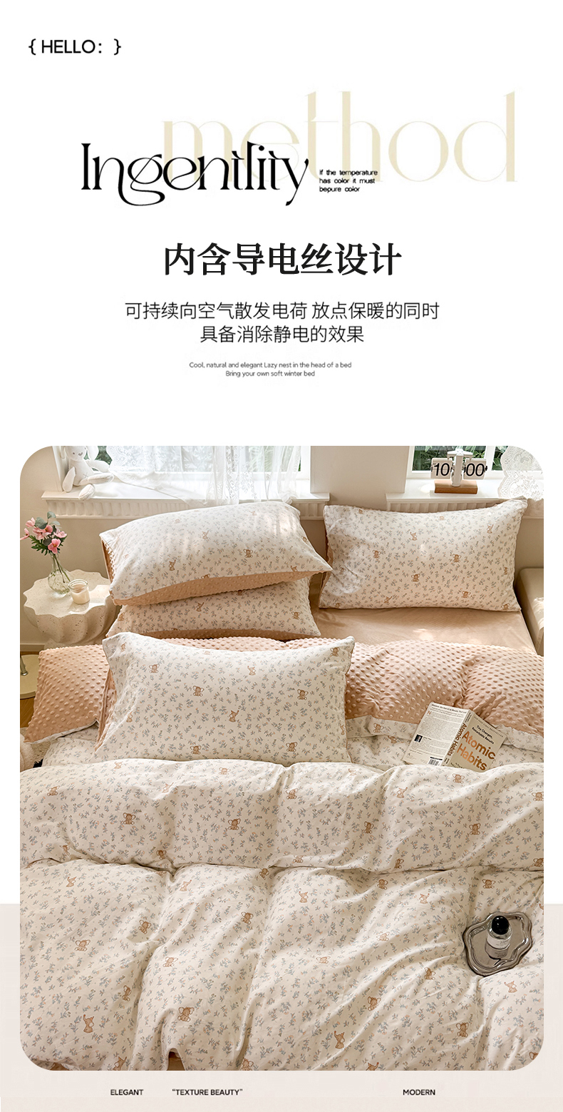 • 91家纺网 家纺一手货源 找家纺 雯雨家纺 2025新款ab版全棉豆豆绒婴儿绒牛奶绒单被套被罩单件 花町香香