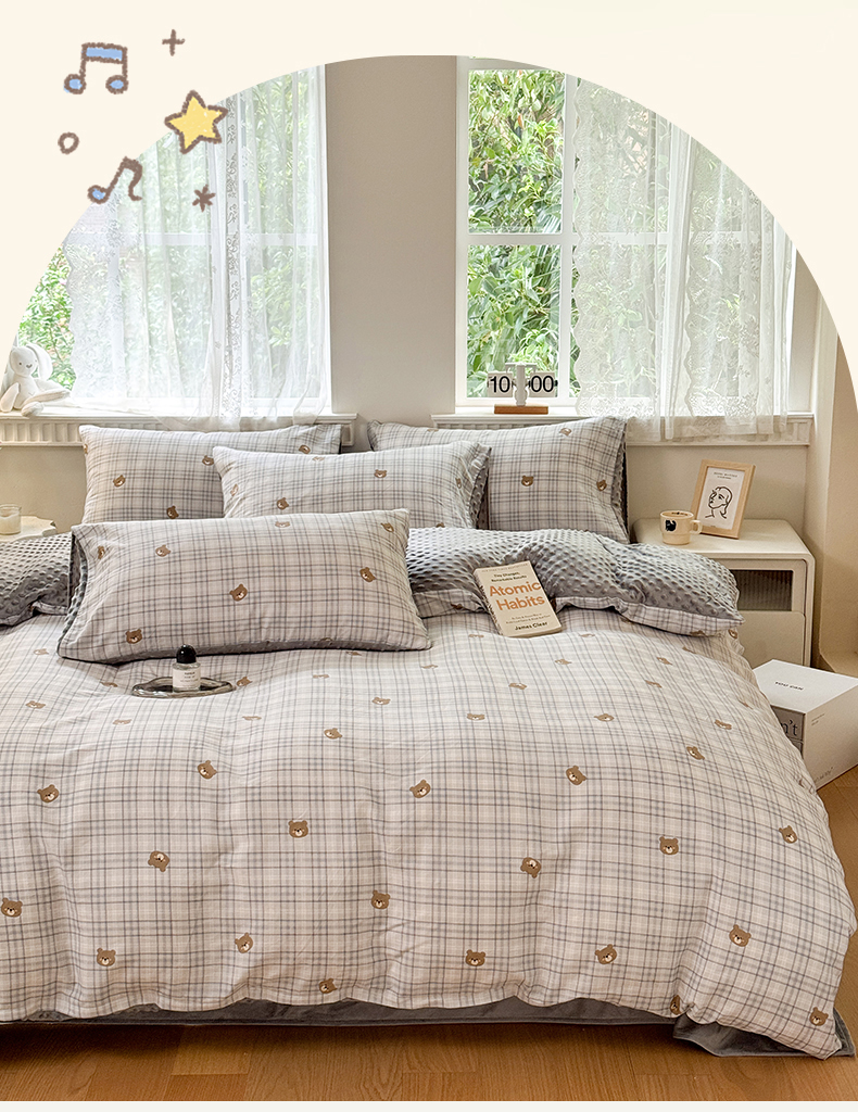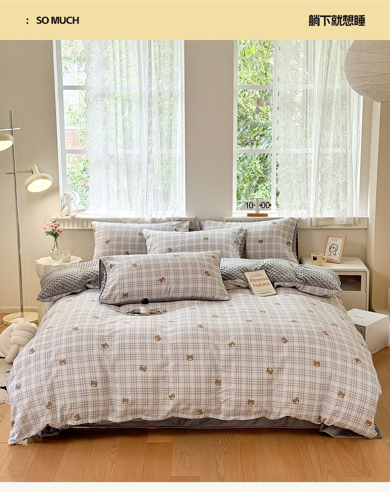当前位置: 91家纺网 > 商品网购 > 床品套件 > 四件套 > 牛奶绒四件套 > 雯雨家纺 2025新款ab版全棉豆豆绒婴儿绒牛奶绒四件套 冰格维尼-兰
