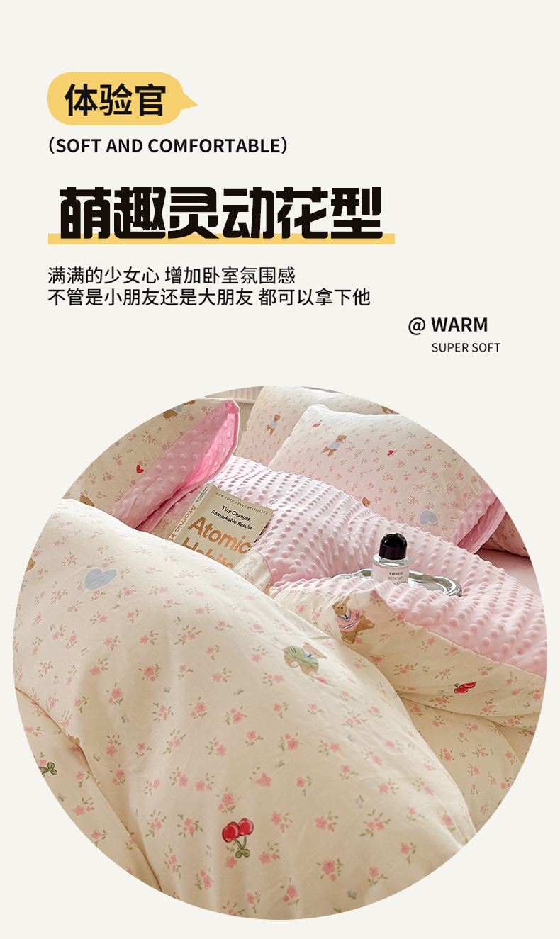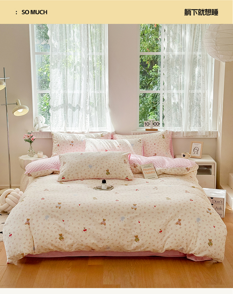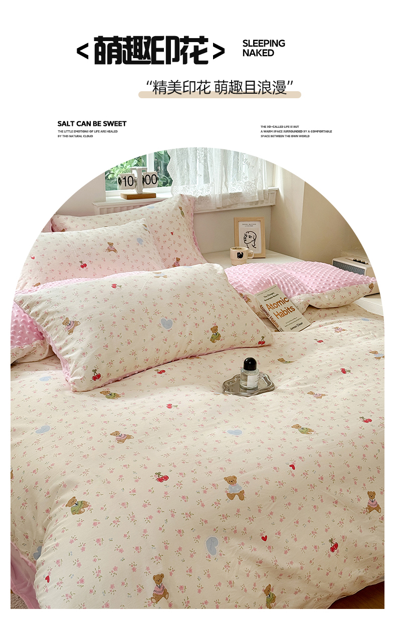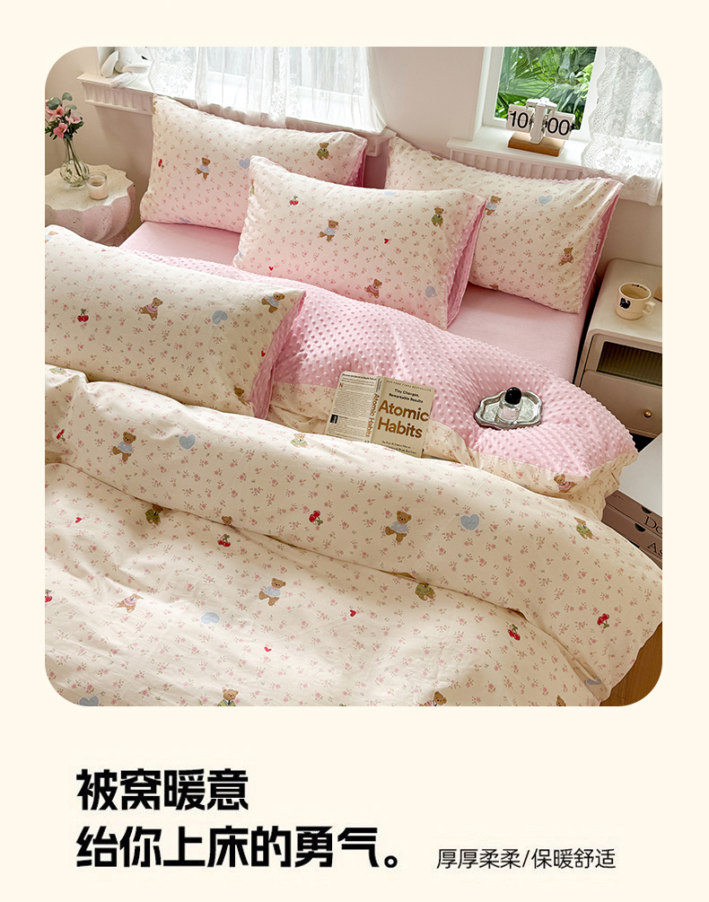 当前位置: 91家纺网 > 商品网购 > 床品套件 > 四件套 > 牛奶绒四件套 > 雯雨家纺 2025新款ab版全棉豆豆绒婴儿绒牛奶绒四件套 小熊慕斯
