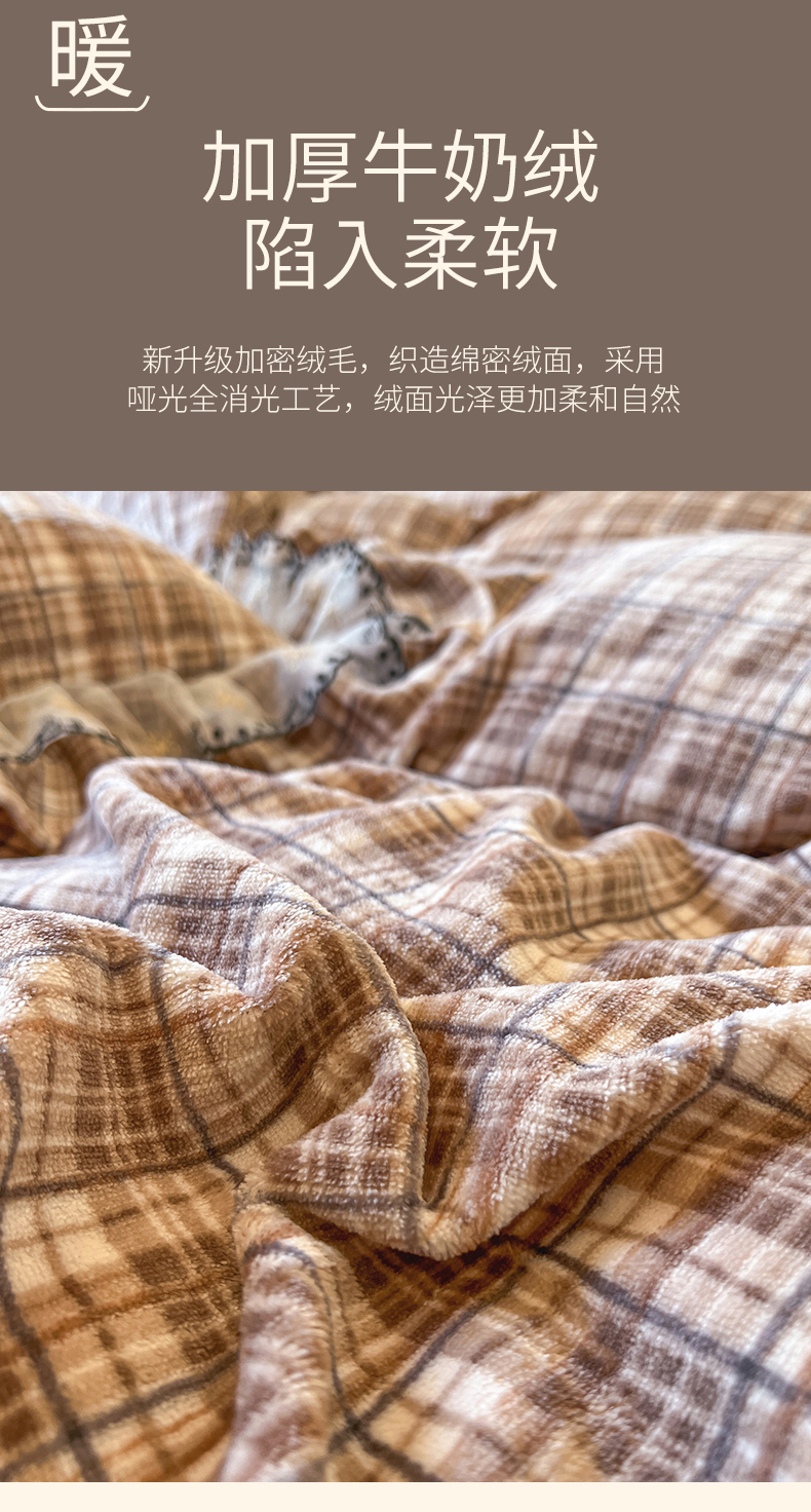 当前位置: 91家纺网 > 商品网购 > 床品套件 > 四件套 > 牛奶绒四件套 > 网红馆(ck家纺) 2025新款高克重牛奶绒床盖四件套-米娅 米娅-棕