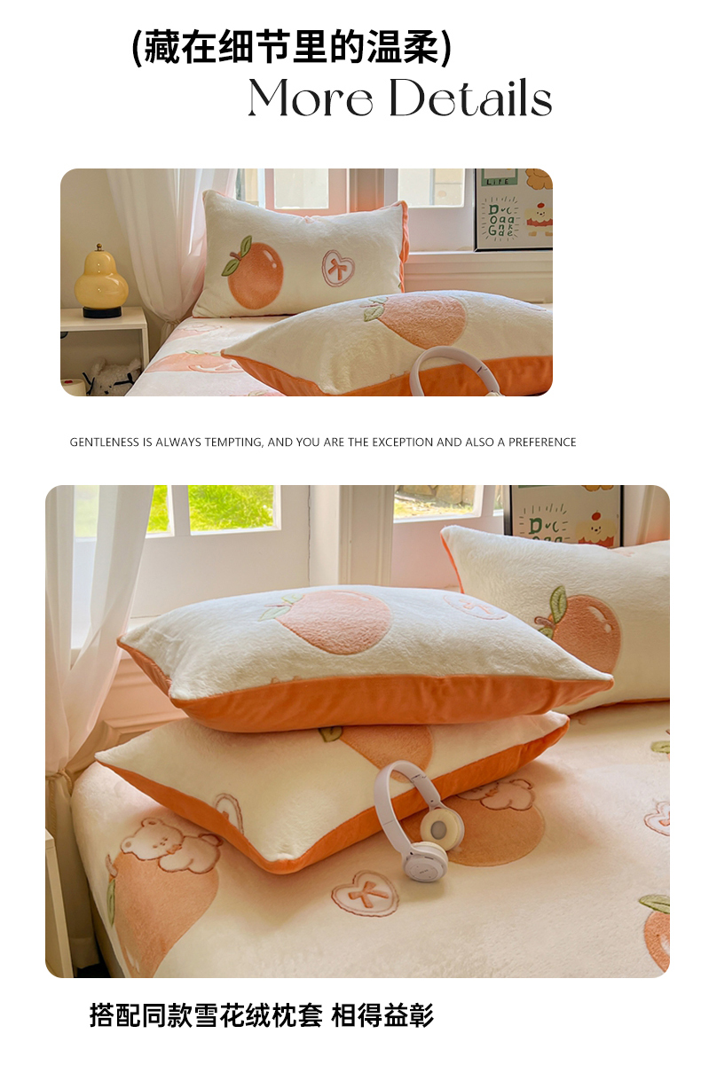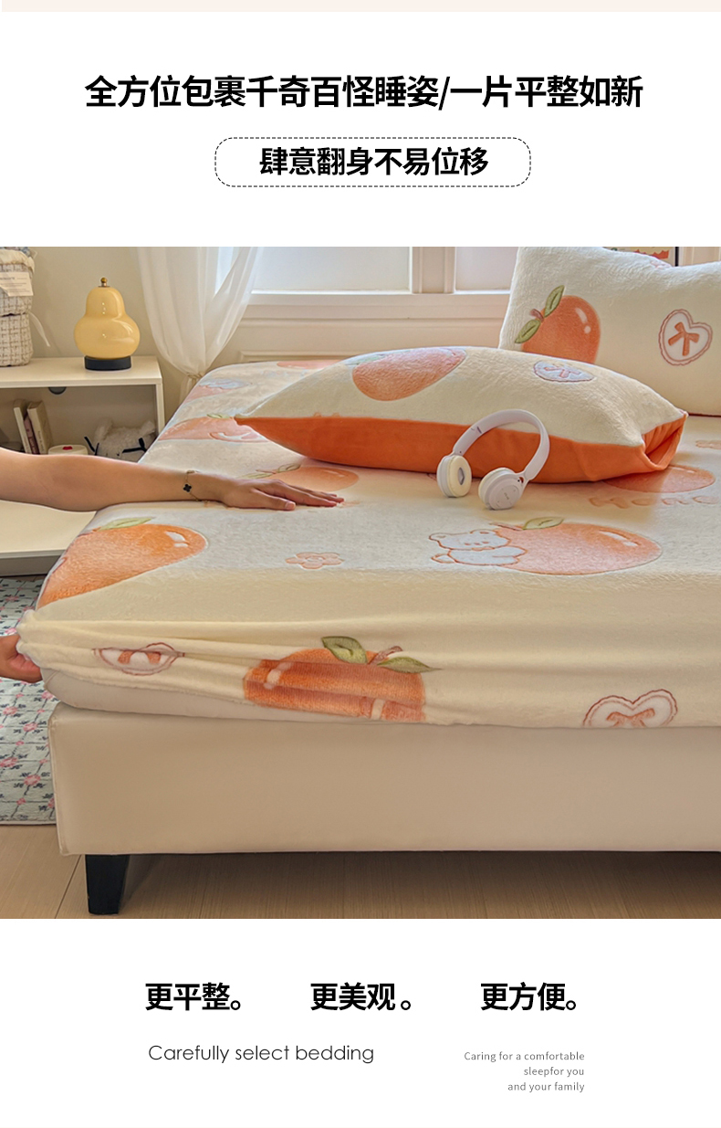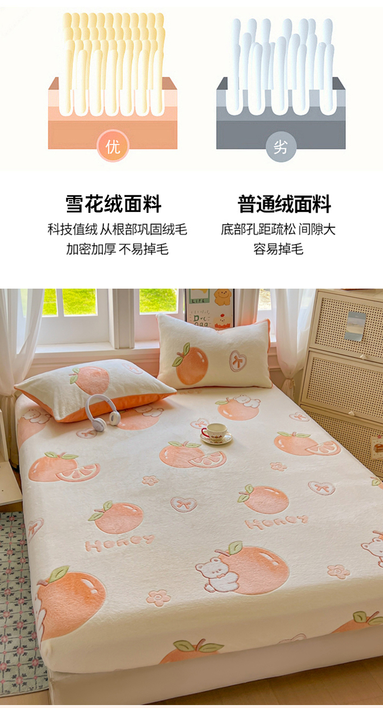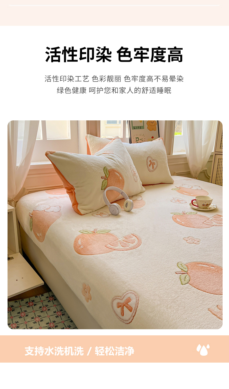 • 91家纺网 家纺一手货源 找家纺 娜朵家纺 2025新款180克雪花绒印花床笠 甜橙