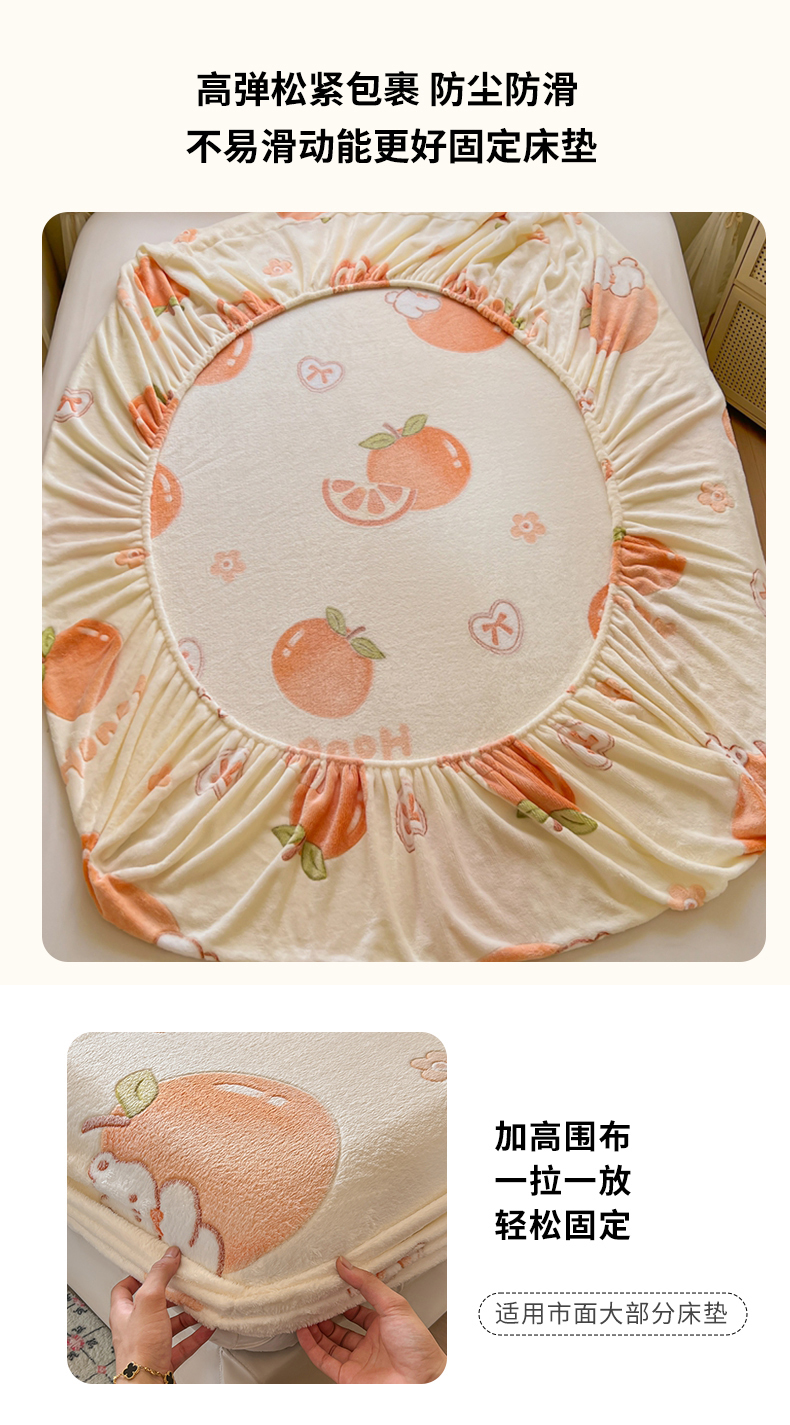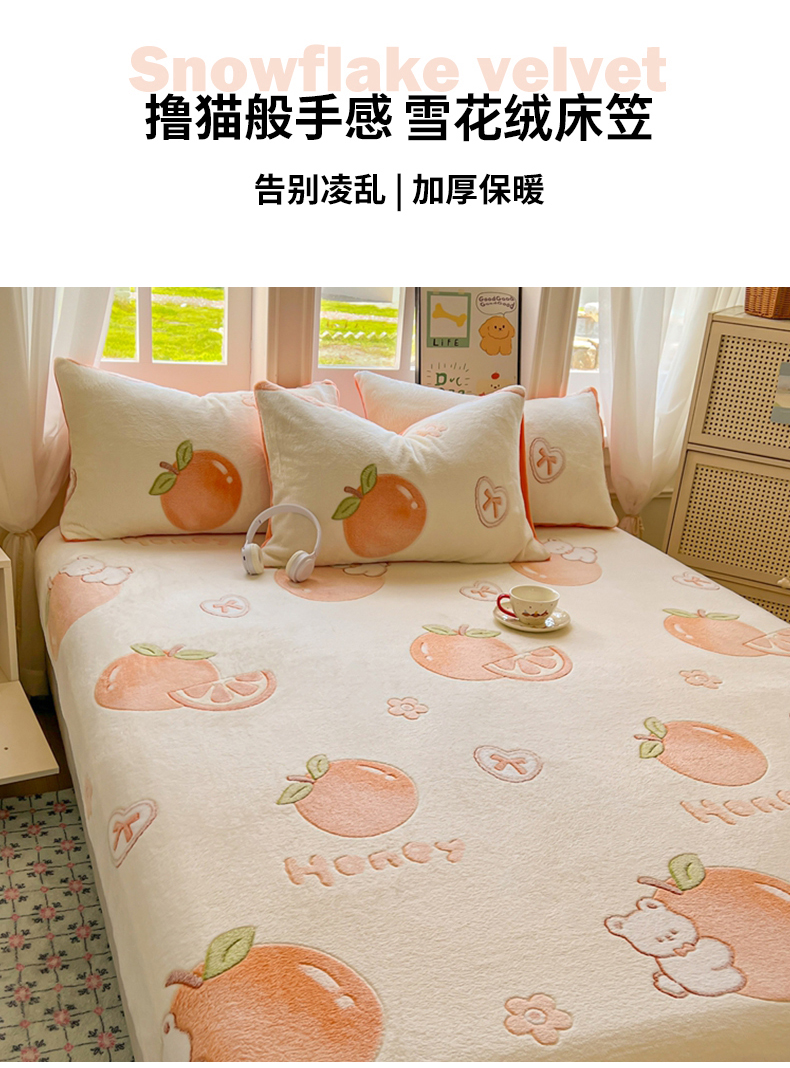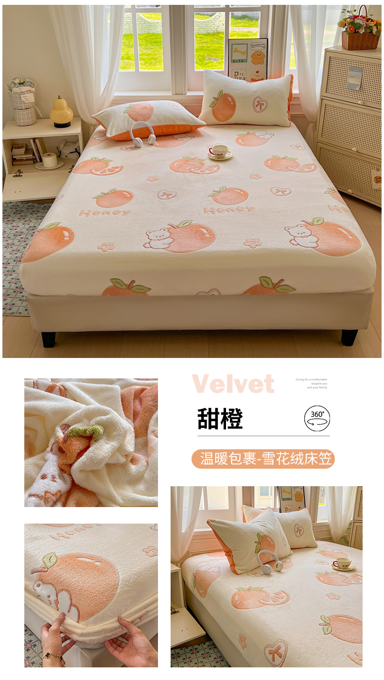 娜朵家纺 2025新款180克雪花绒印花床笠 甜橙