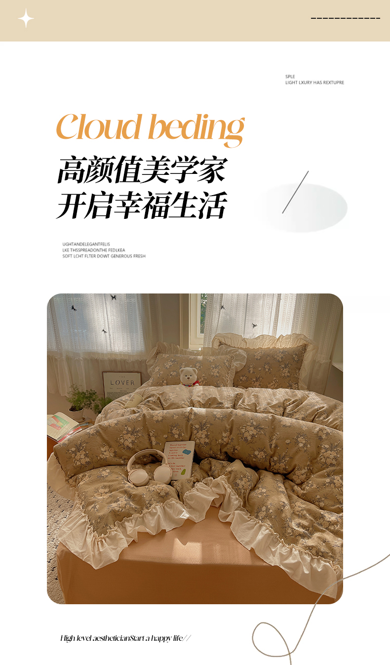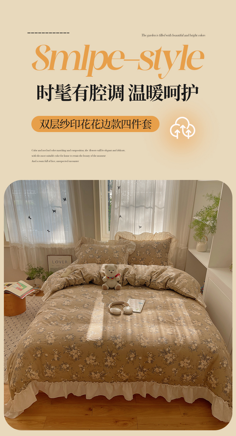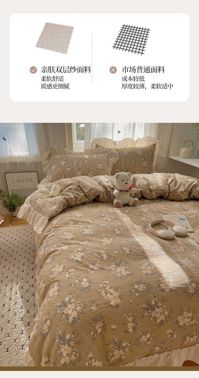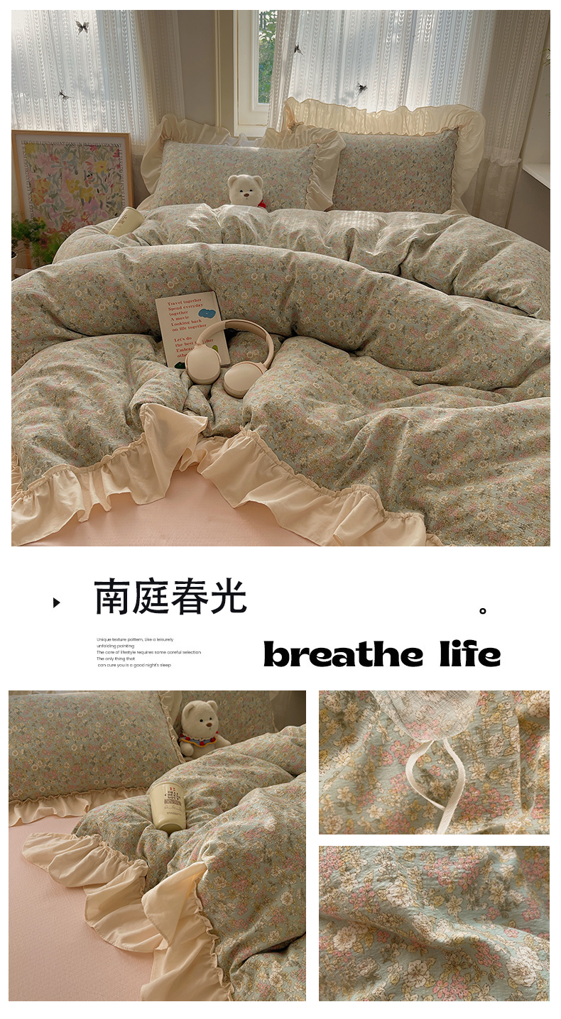 当前位置: 91家纺网 > 商品网购 > 床品套件 > 四件套 > 其它四件套 > 初念 2025新款法式花边款小碎花云感双层纱系列四件套-曼塔(小红书推荐)提供买家秀 曼塔-雨眠岛屿
