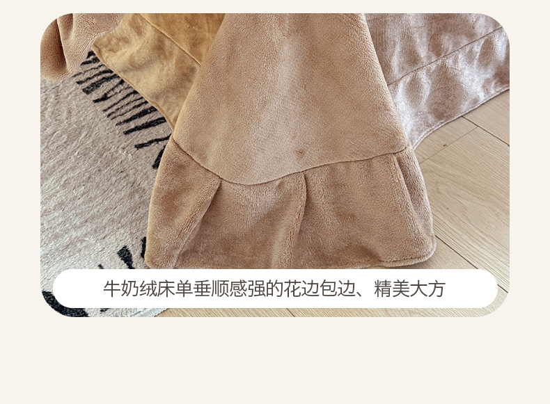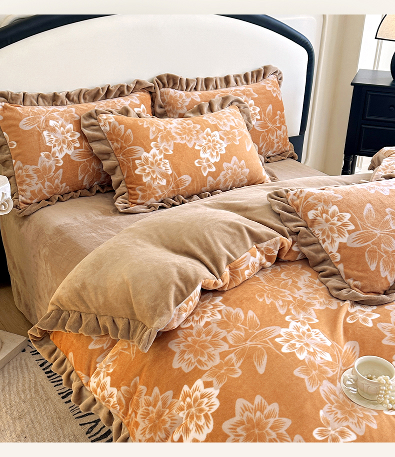 绘萱家居 2025新款爆款高密消光双层花边牛奶绒四件套印花 灵动花语