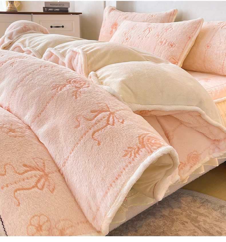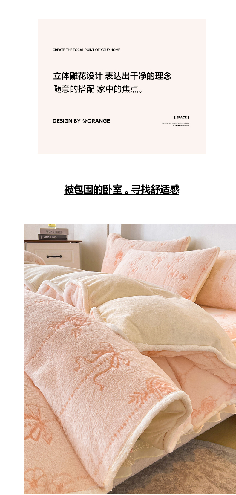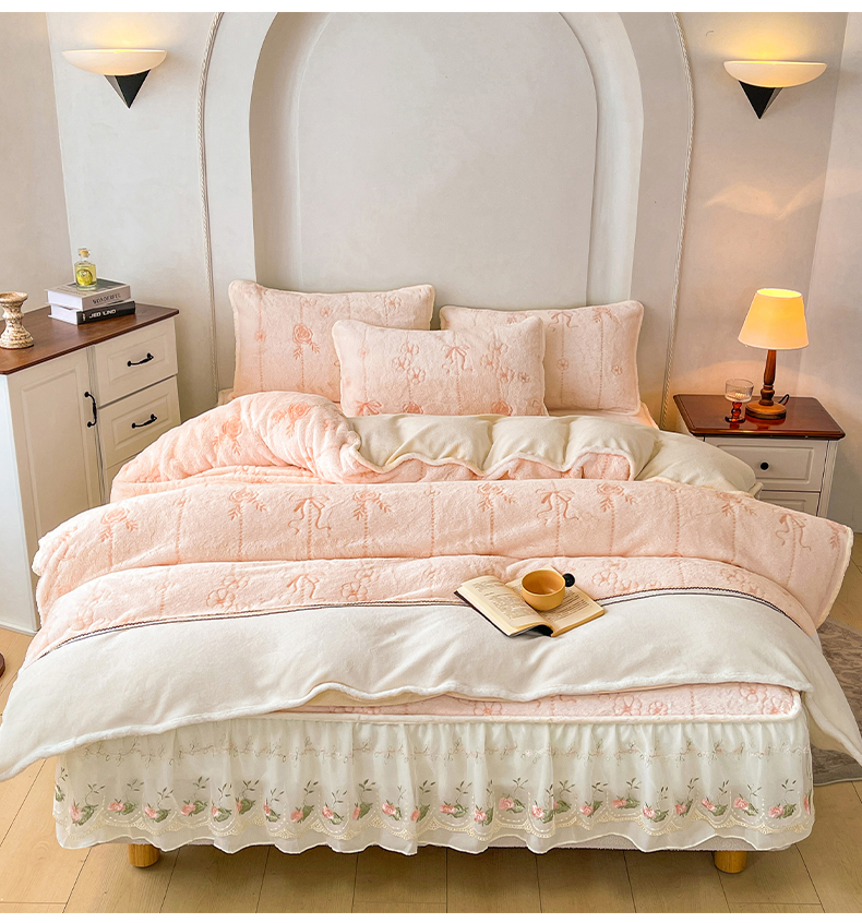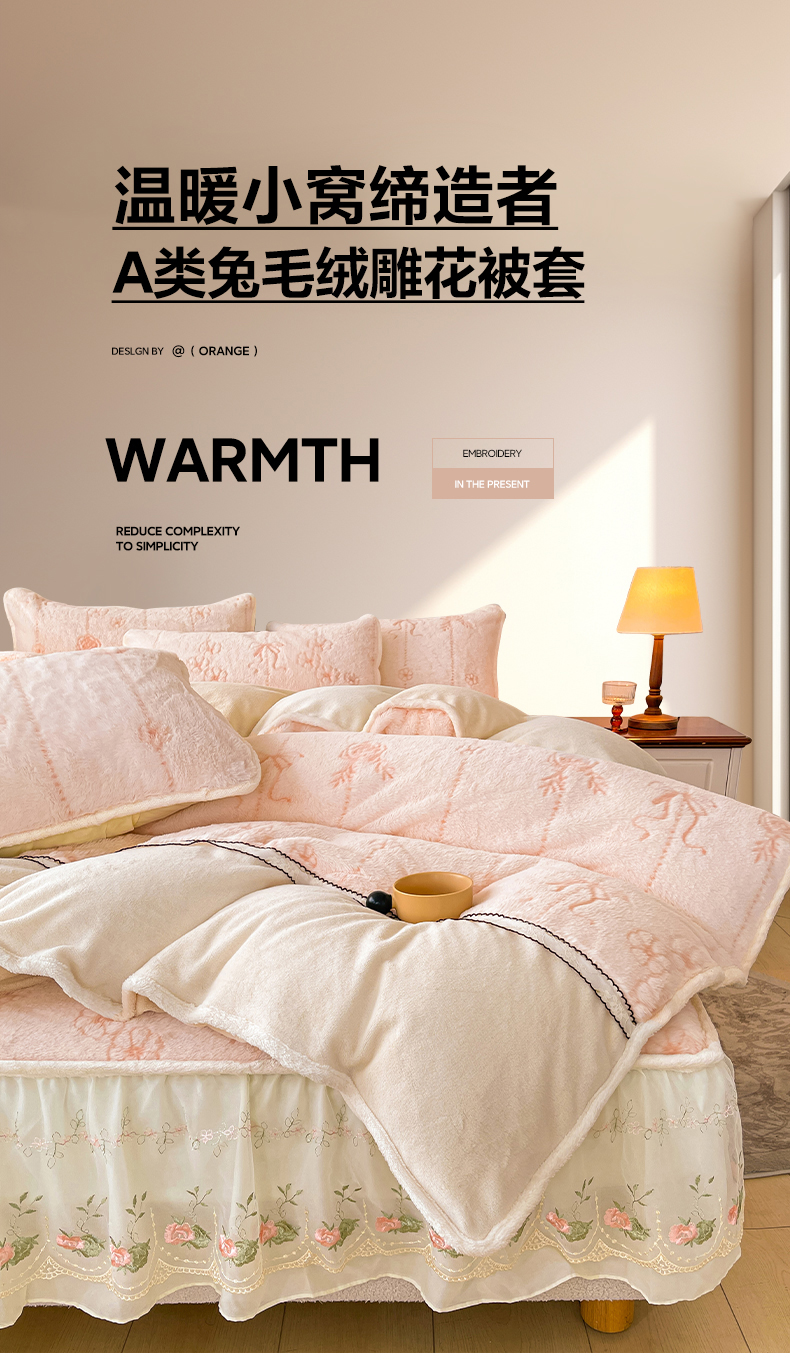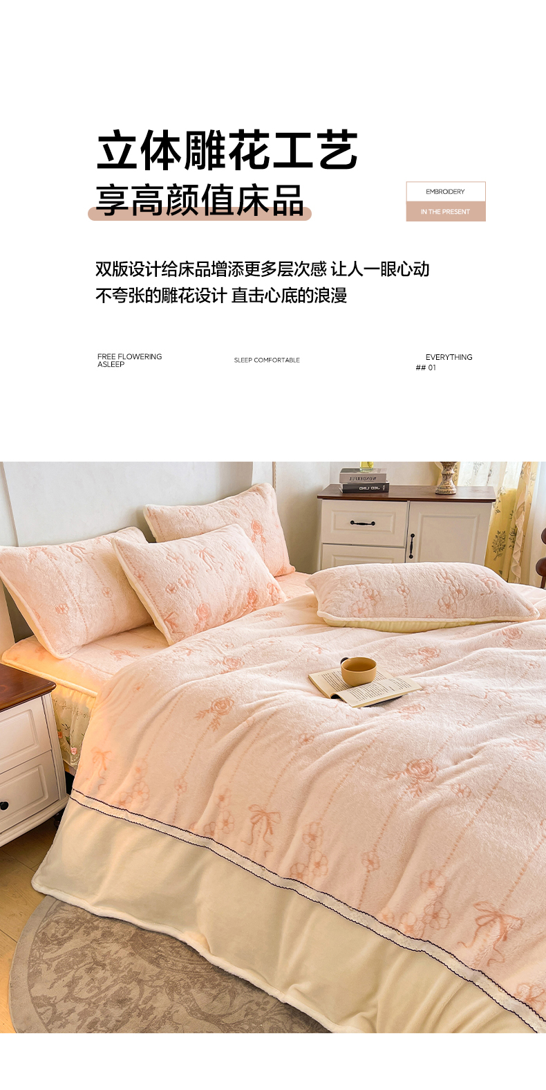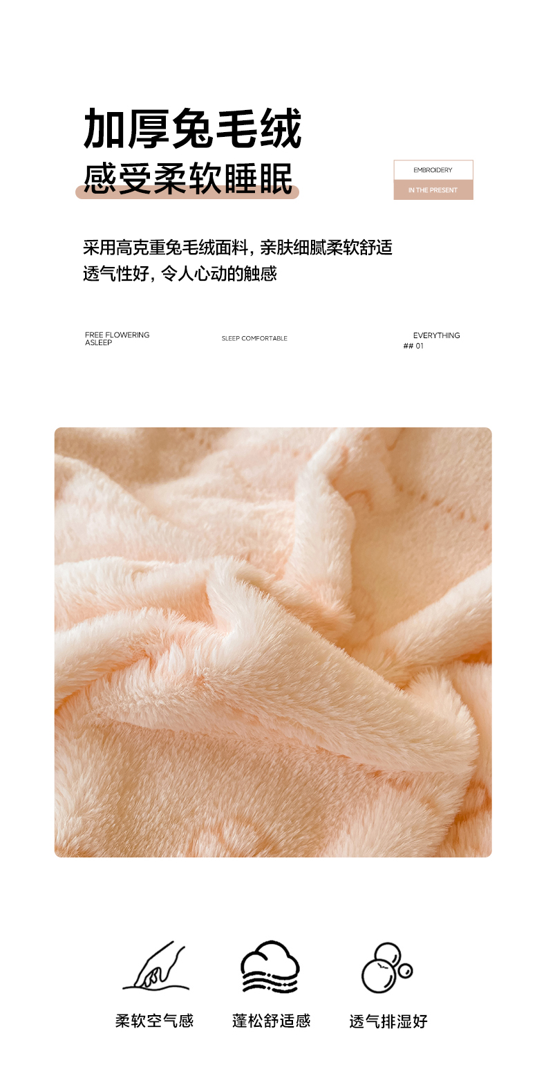 商品名称:眠势力 2025新款兔毛绒雕花被套冬季兔兔绒加绒保暖被罩 若溪-沁粉
