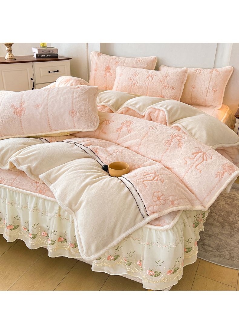 (总)眠势力 2025新款兔毛绒雕花四件套冬季兔兔绒加绒被套床裙款床笠套件带刺绣花边,繁花-沁粉,繁花-灰紫,繁花-绒绿,繁花-霜兰,若溪-灰紫,若溪-沁粉,若溪-绒绿,若溪-霜兰