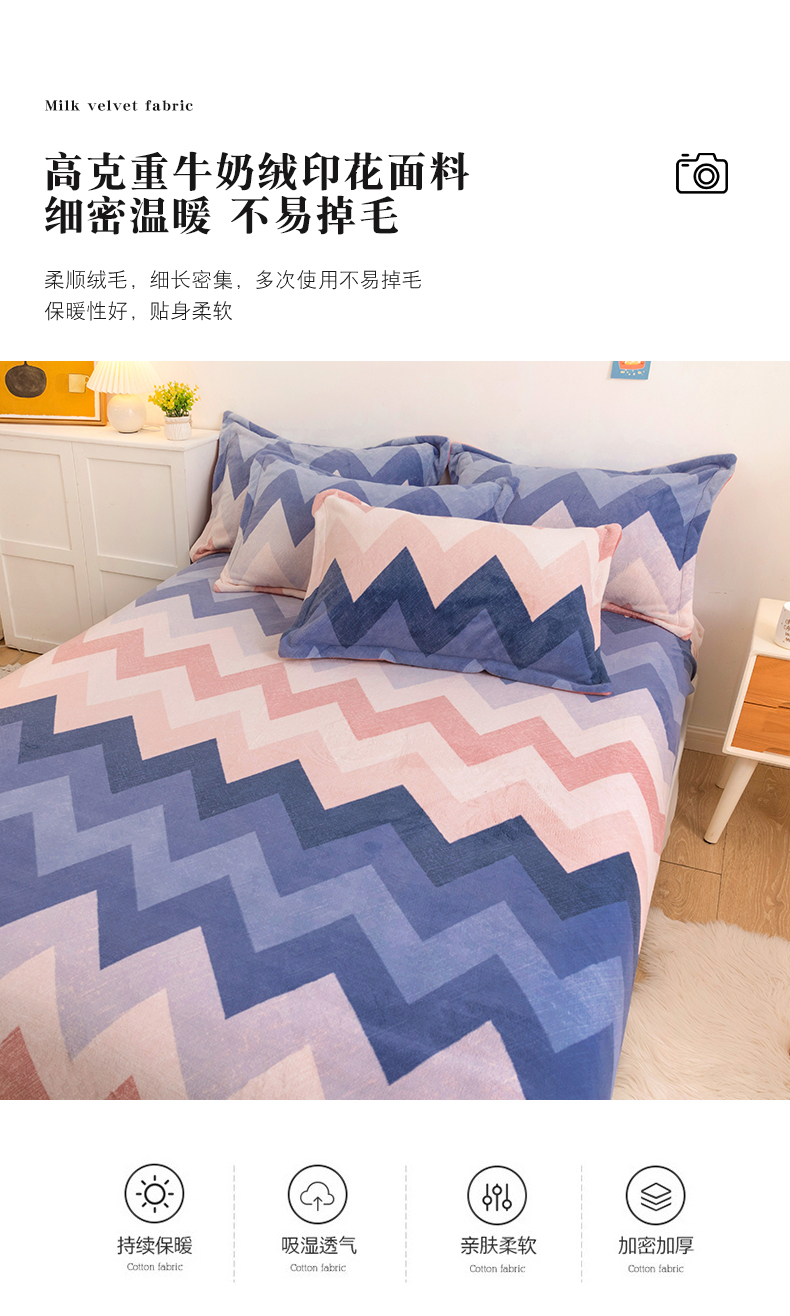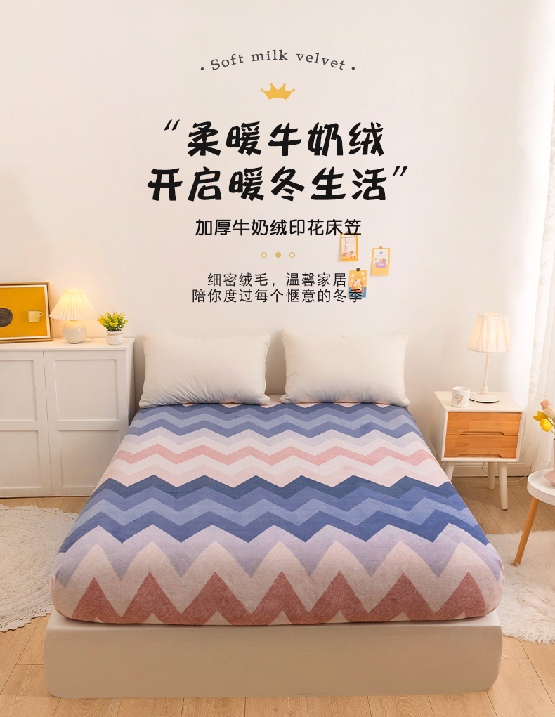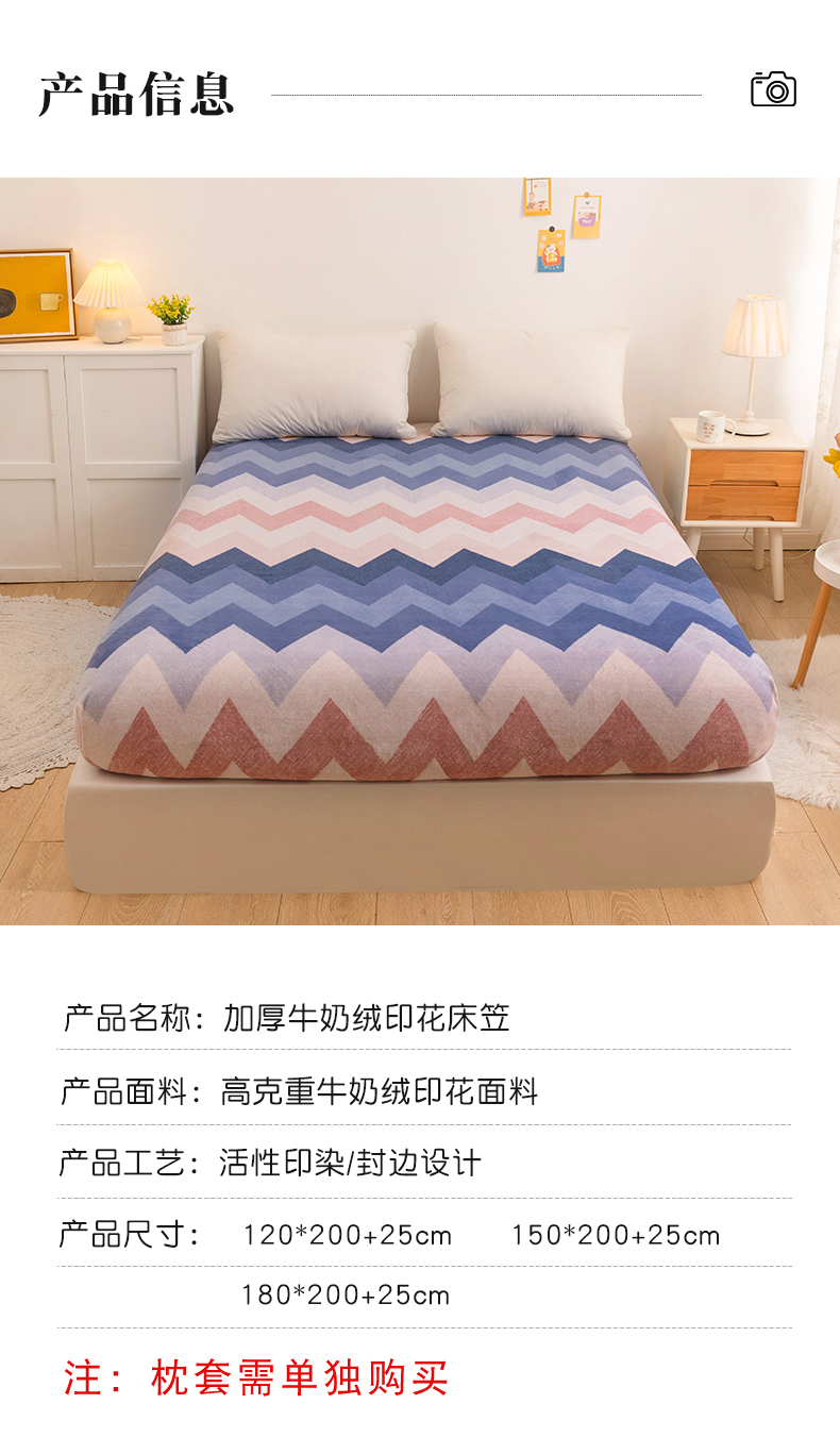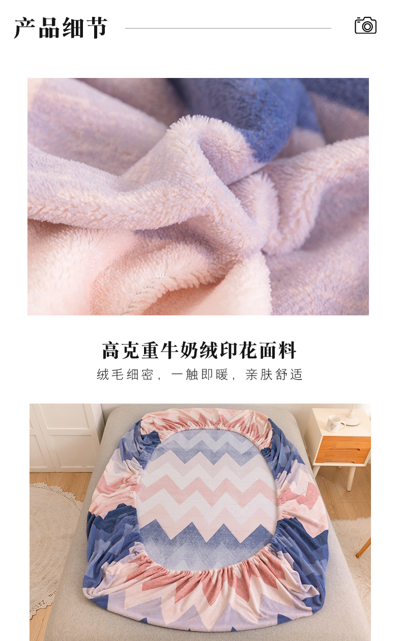 商品名称:金盛纺 2025新款高克重牛奶绒印花系列单床笠(可定制) 梦境(粉)