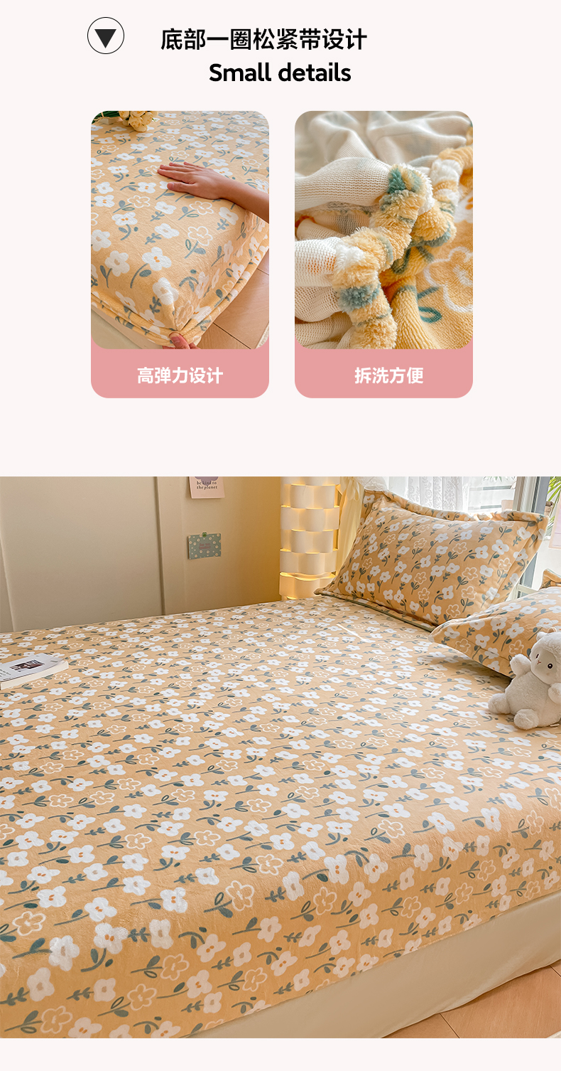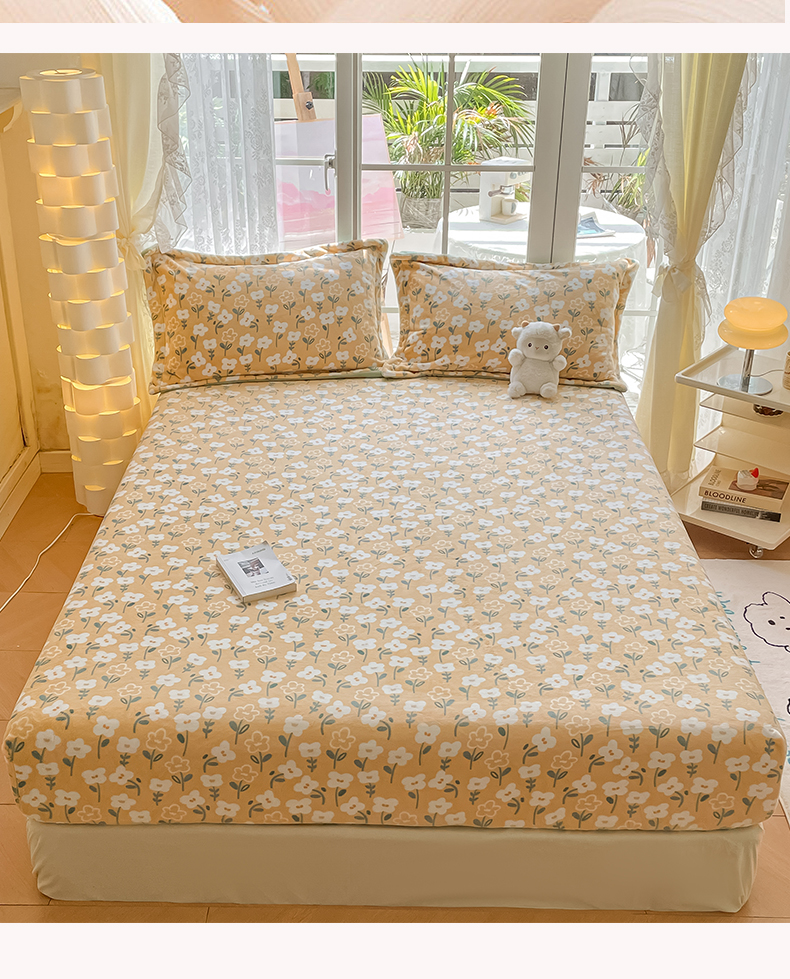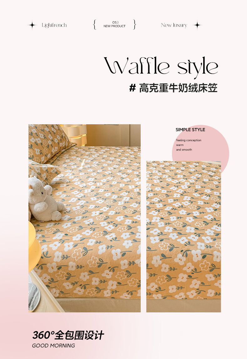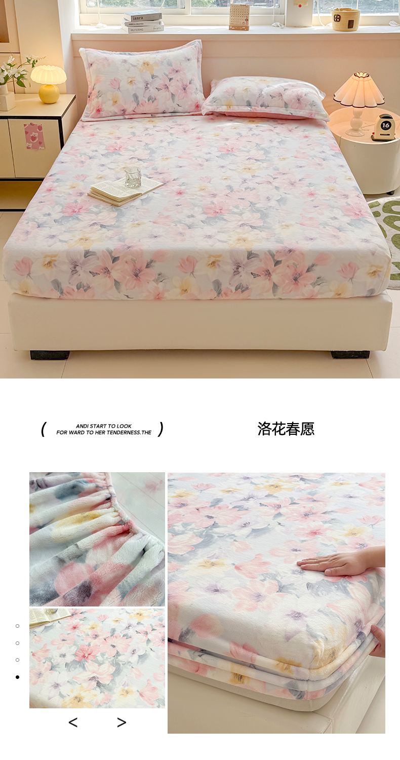 商品名称:金盛纺 2025新款高克重牛奶绒印花系列单床笠(可定制) 丽人花都