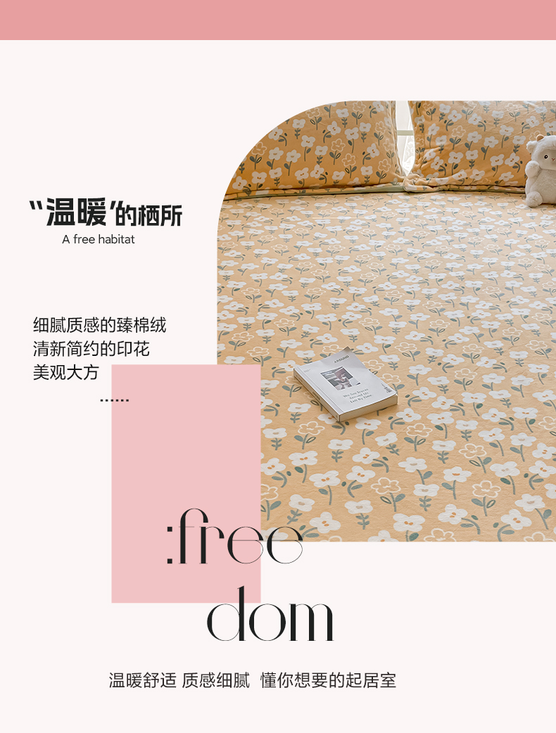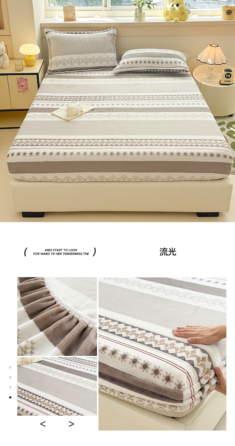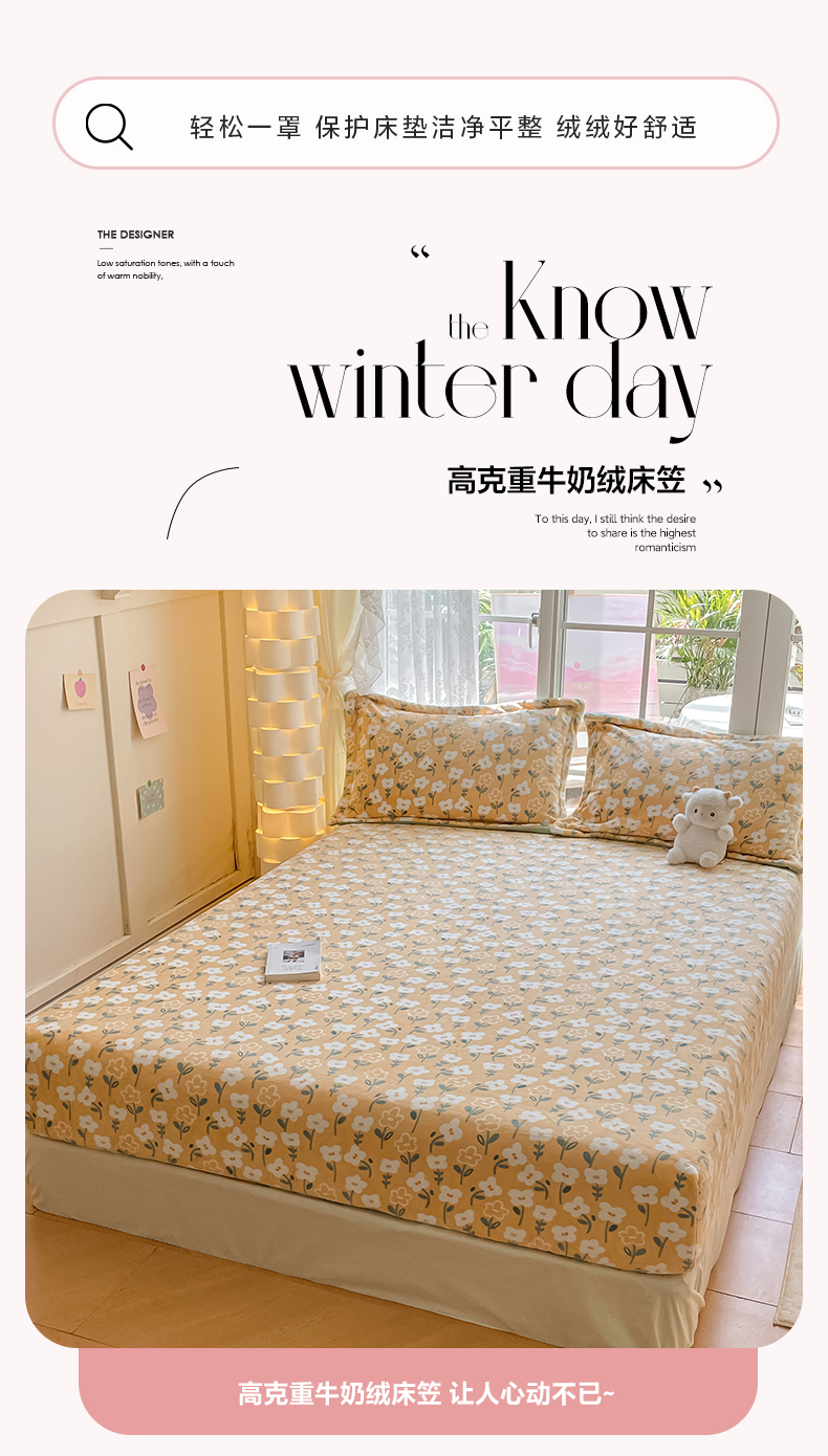 商品名称:金盛纺 2025新款高克重牛奶绒印花系列单床笠(可定制) 丽人花都