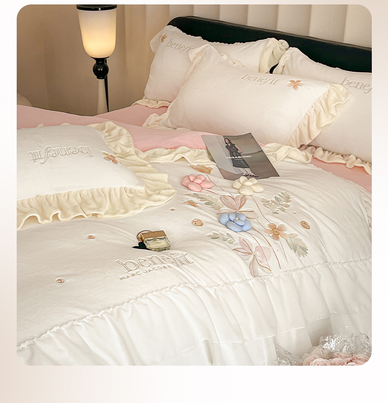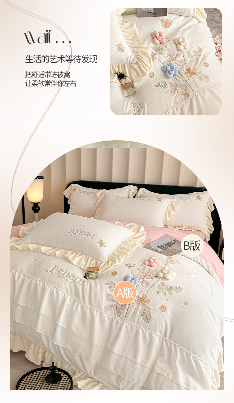 (总)爱家(原缔乐家纺) 2025新款A类高克重牛奶绒立体花刺绣四件套-花蜜,花蜜-公主粉,花蜜-天空兰,花蜜-奶昔白,花蜜-梦幻紫