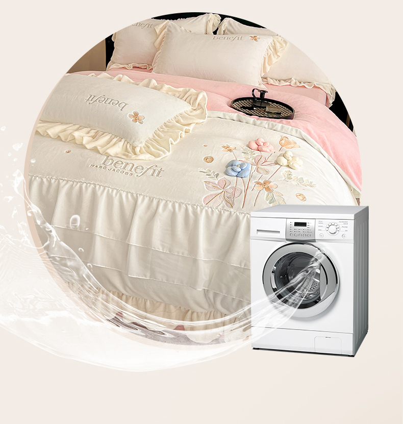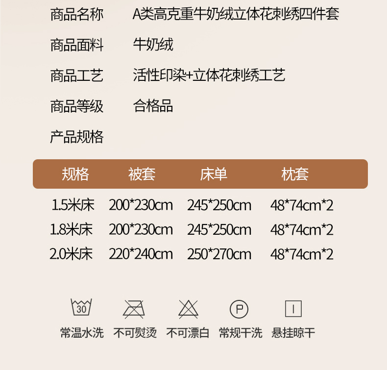 商品名称:爱家(原缔乐家纺) 2025新款A类高克重牛奶绒立体花刺绣四件套-艾丽莎 艾丽莎-公主粉