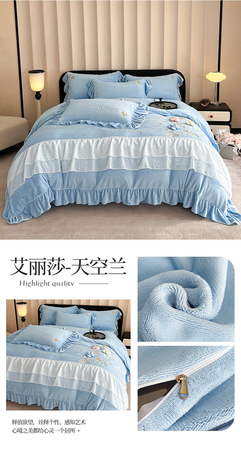 (总)爱家(原缔乐家纺) 2025新款牛奶雕花绒四件套-小雏菊,小雏菊-公主粉,小雏菊-奶昔白,小雏菊-天空兰
