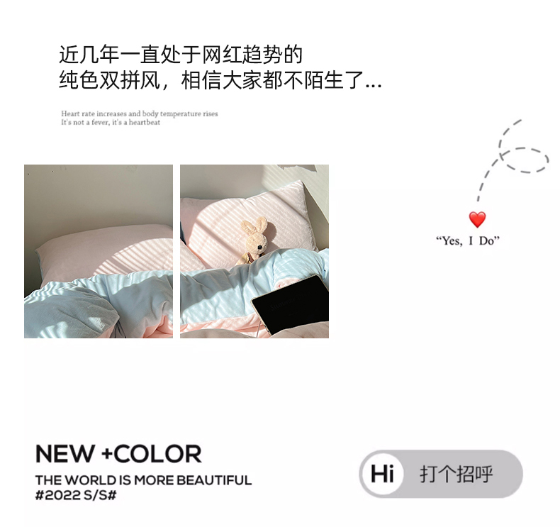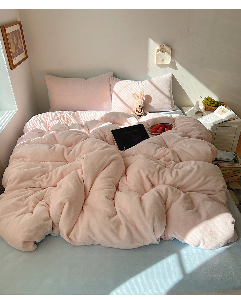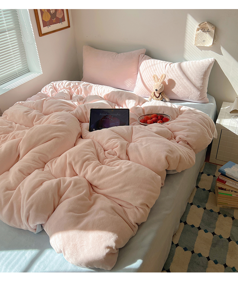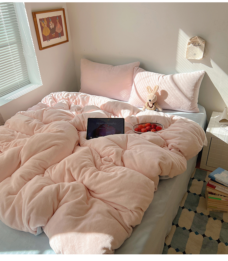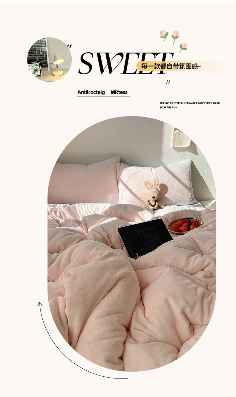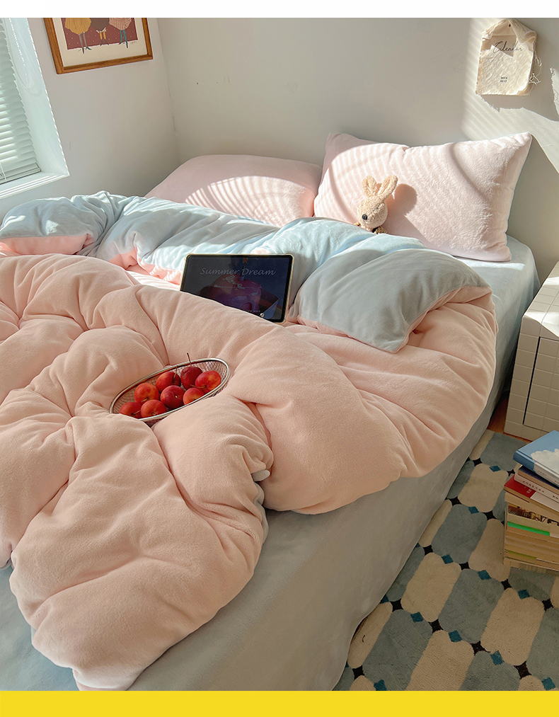 当前位置: 91家纺网 > 商品网购 > 床品套件 > 四件套 > 牛奶绒四件套 > 六巷胡同 2025新款INS博主风纯色双拼A类牛奶绒四件套 粉椰蓝海