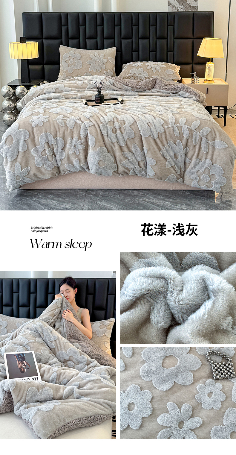 (总)枋梢家纺 2025新款亮丝兔毛绒兔毛提花暖居花漾羊羔绒 双层加厚保暖盖毯 居家午睡保暖毯,花漾-粉色,花漾-咖色,花漾-绿色,花漾-米黄,花漾-浅灰,花漾-深灰,花漾-驼色,花漾-紫色,包装