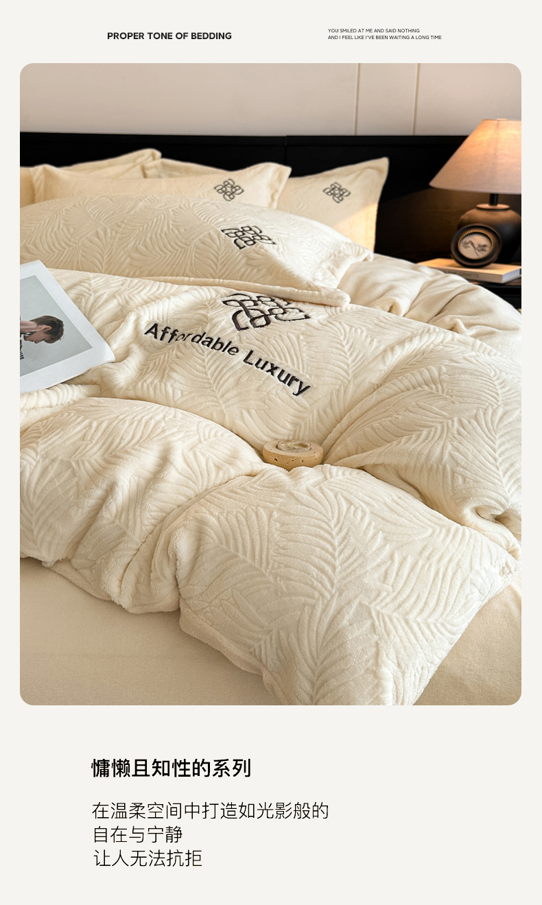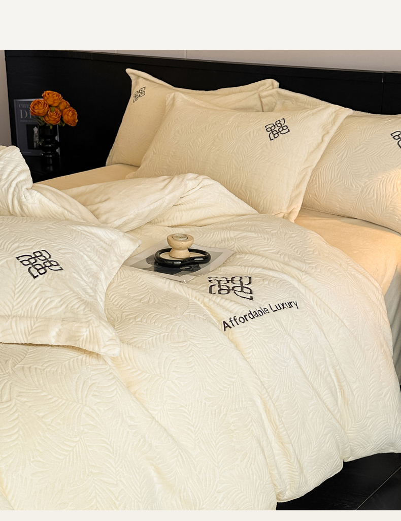 当前位置: 91家纺网 > 商品网购 > 床品套件 > 四件套 > 牛奶绒四件套 > 慕晨 2025新款立体提花绒简约风格高克重雕花加厚牛奶绒四件套 水杉叶-米白