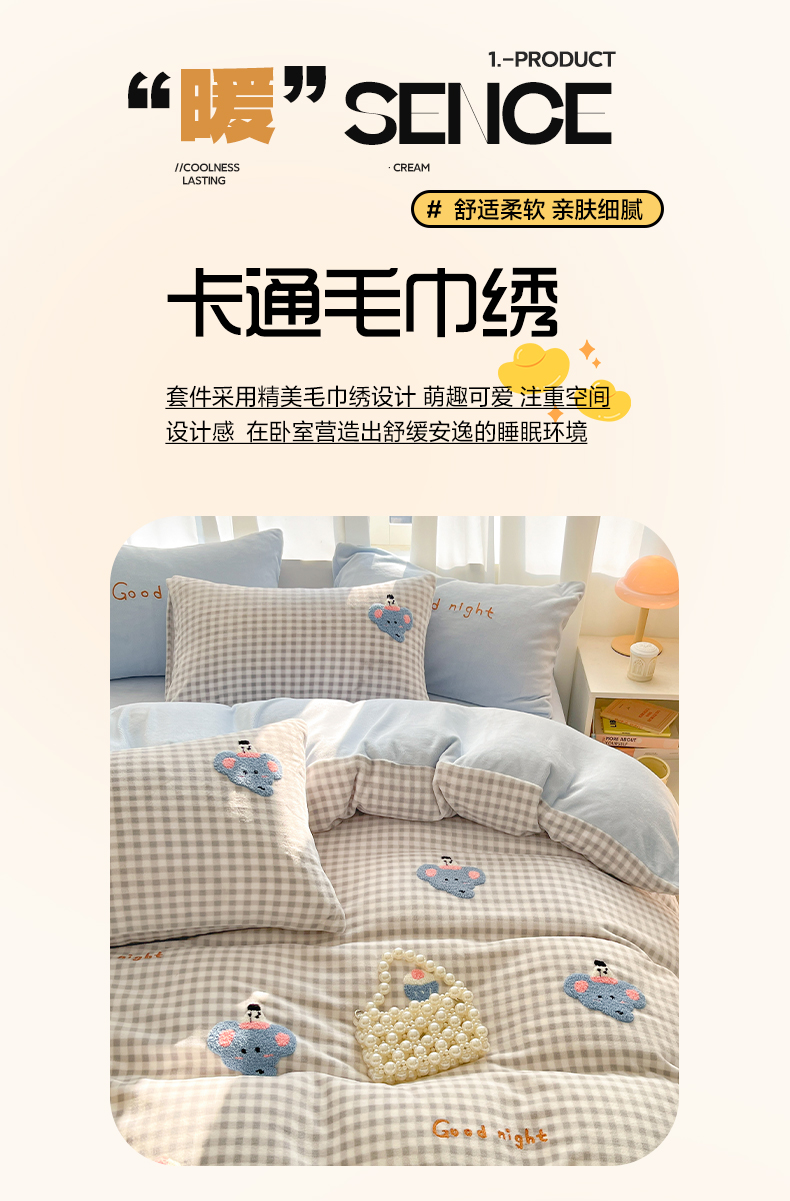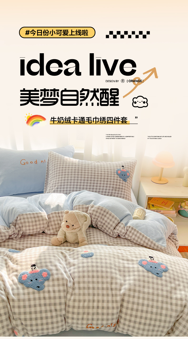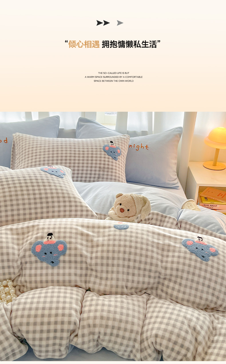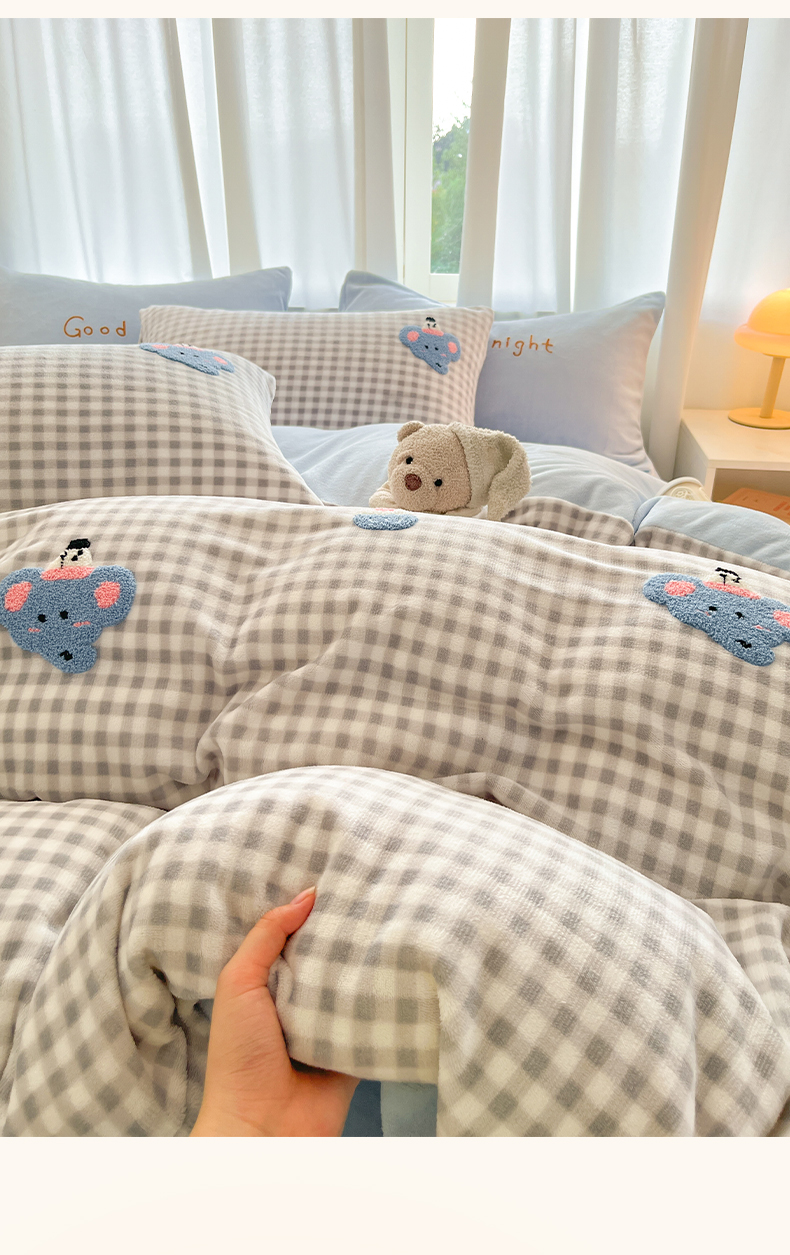当前位置: 91家纺网 > 商品网购 > 床品套件 > 四件套 > 牛奶绒四件套 > 如一 2025新款卡通毛巾绣系列牛奶绒四件套第二批 晚安小象