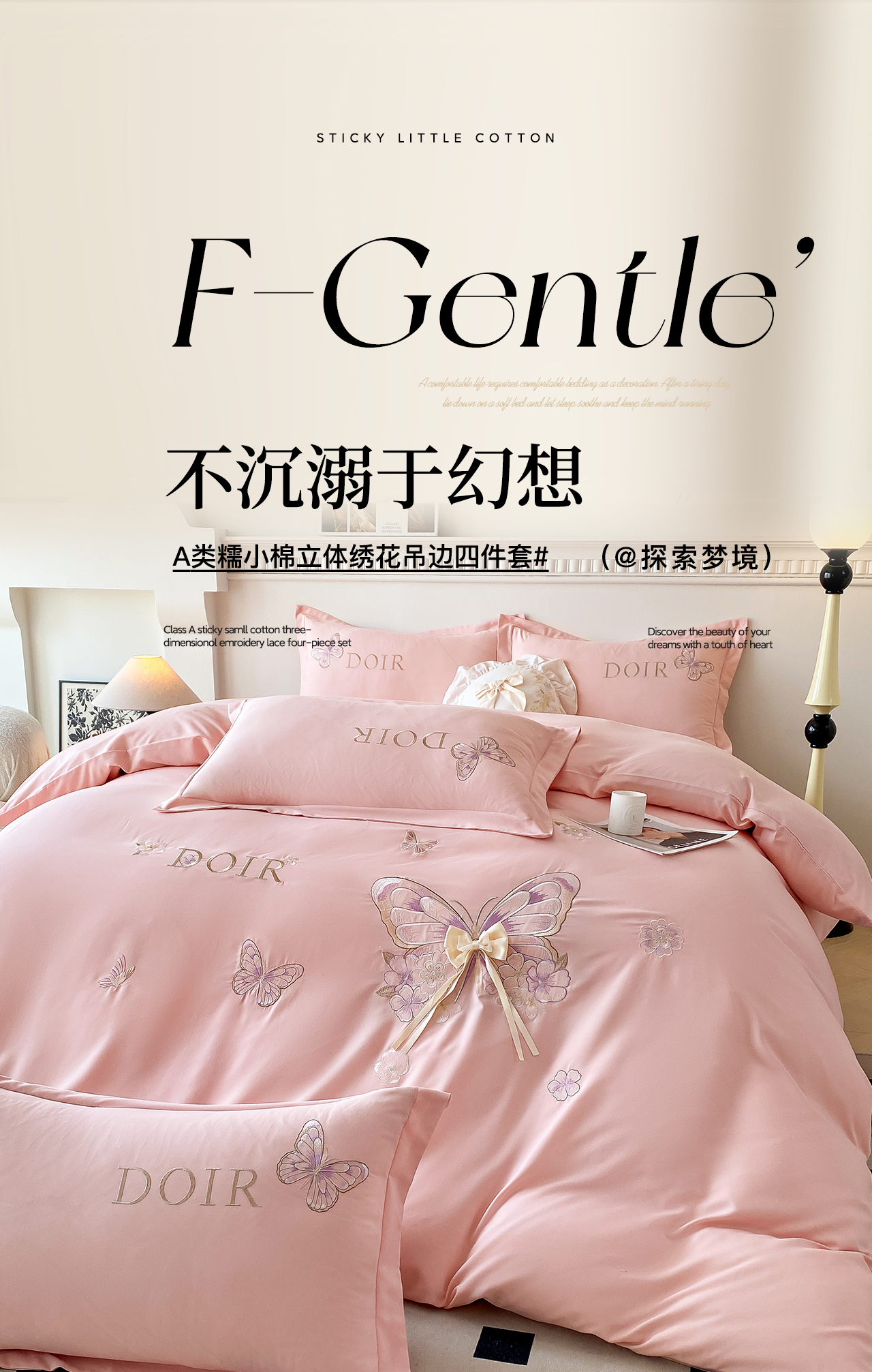 (总)大麦乐田 2025新款糯小棉立体绣花吊边四件套-蝶梦花语,蝶梦花语 粉玉,蝶梦花语 桔色,蝶梦花语 浅兰,蝶梦花语 浅绿,蝶梦花语 浅紫
