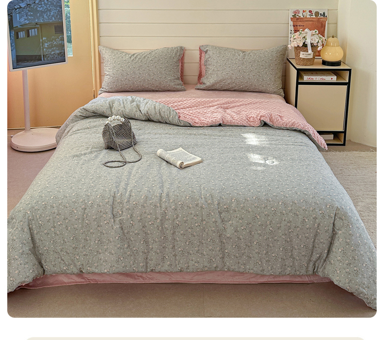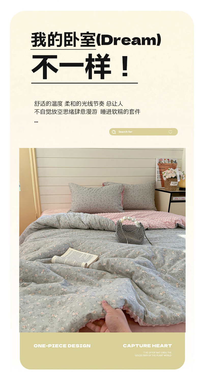 (总)麦伦家居 2025多功能床品全棉纯棉A类有氧双层纱+豆豆绒四件套荷叶边系列,组合图仅供展示不可下单,星星人,童梦木马,糖炒栗子,花田粉兔,白月光,桃夭夭,豹纹猫咪,空谷幽兰,晚秋,花棠,莫奈花园,蒂芙尼-粉,青芜,花样年华,椿野