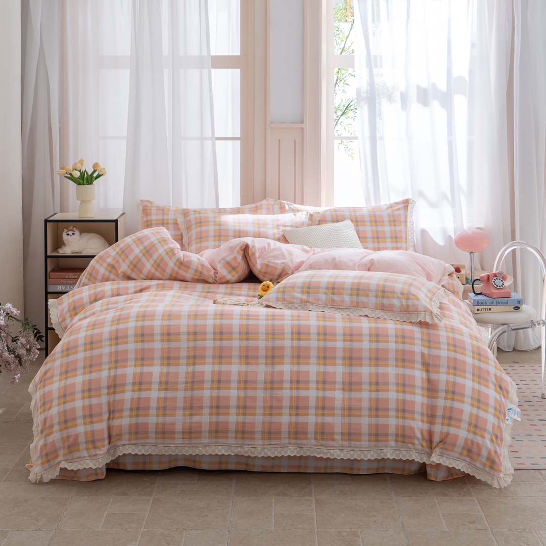 (总)玖琳家纺 2024新款全棉色织水洗棉四件套,粉紫小格,粉紫中格,复古条灰,蓝中格,罗曼黄,蜜恋,肖邦 粉,星辰 绿,星辰紫,雅典 绿,知否