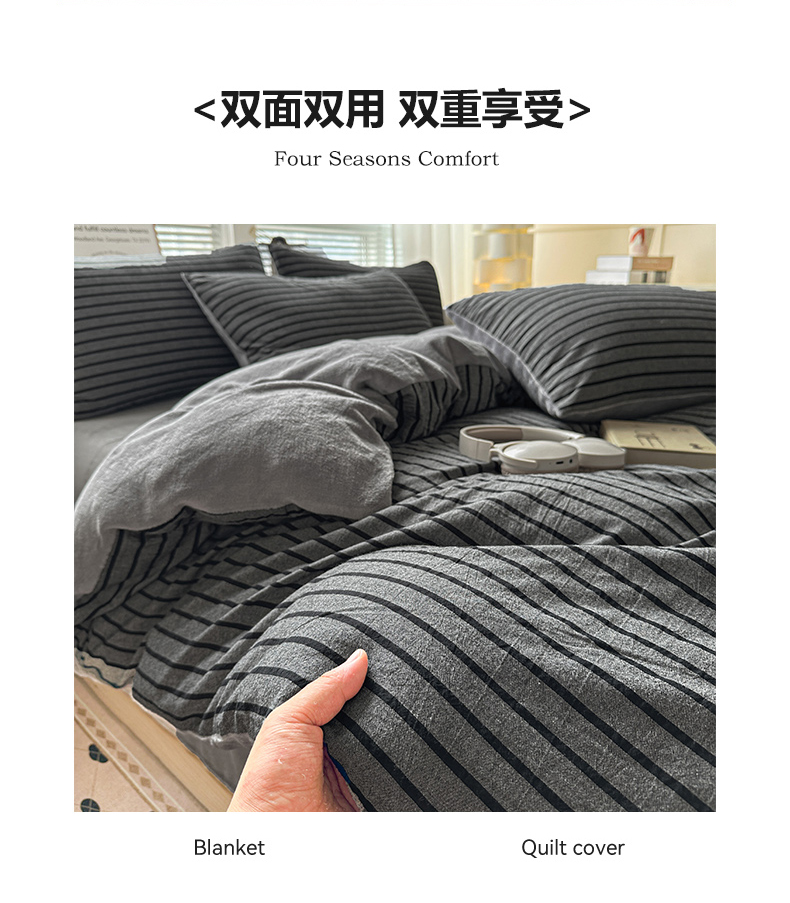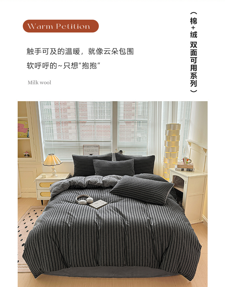 当前位置: 91家纺网 > 商品网购 > 床品套件 > 四件套 > 全棉普通四件套 > 柠萌家居 2025新款无印良品风双拼全棉色织水洗棉加牛奶绒四件套简约全棉拼牛奶绒四件套 提供买家秀 棉+绒白日梦想家