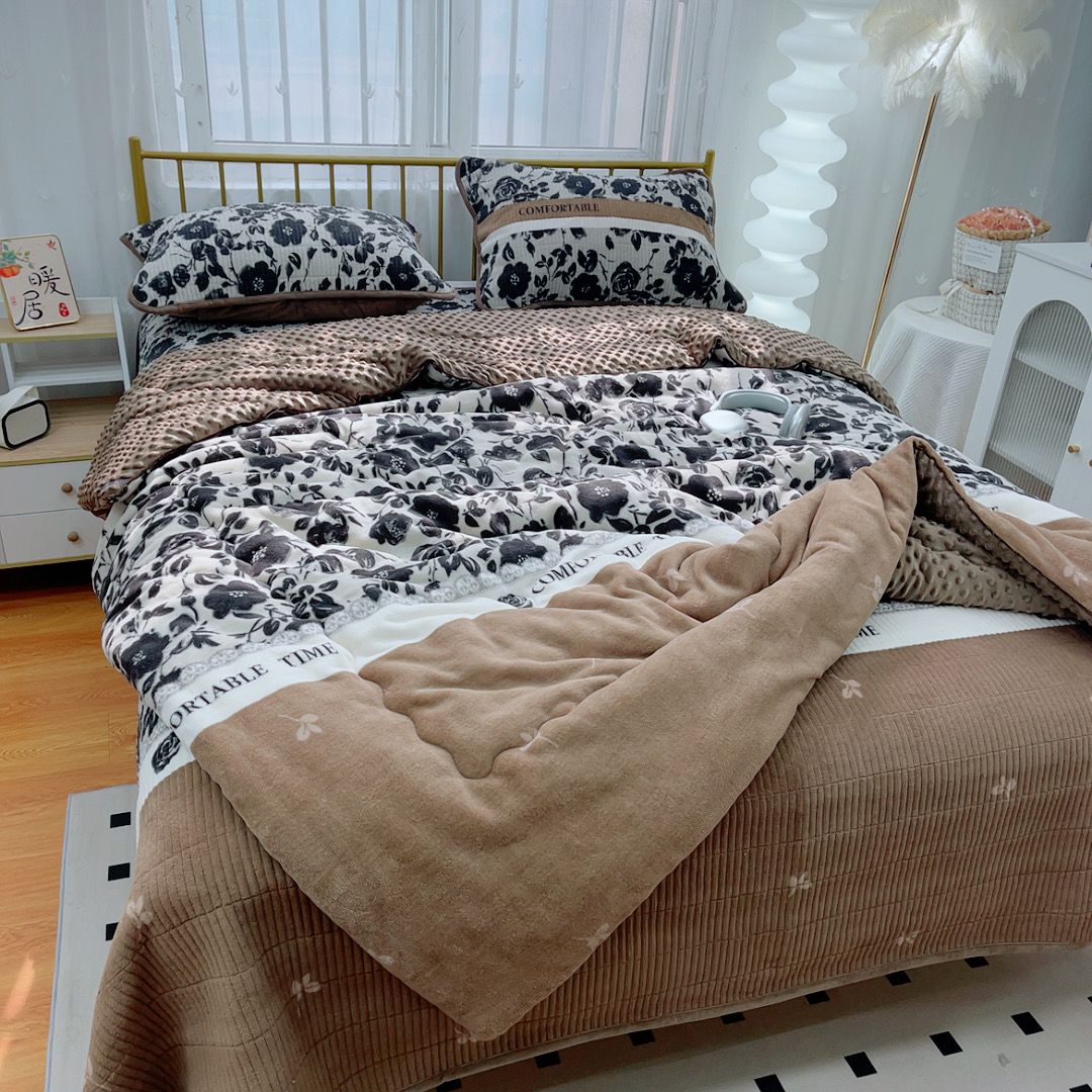220X240高克重牛奶绒床盖+枕套一对