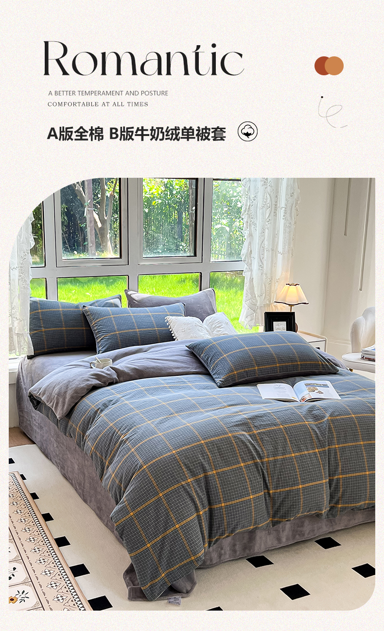 • 91家纺网 家纺一手货源 找家纺 柠萌家居 2025新款无印良品风双拼全棉色织水洗棉加牛奶绒单品被套简约风全棉拼牛奶绒单被套 棉+绒-瓦尔灰