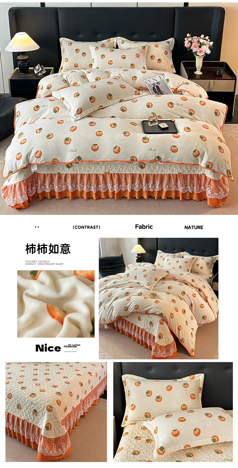 商品名称:栩裕纺织 2025新款加厚牛奶绒床盖四件套 柿柿如意