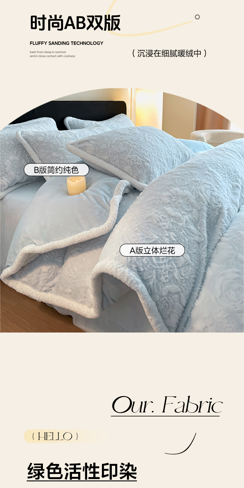 (总)民新家纺 2025新款立体烂花兔毛包边款四件套,经典玫瑰-樱花粉,经典玫瑰-浅蓝,经典玫瑰-浅米黄,经典玫瑰-浅紫,经典玫瑰-青柠绿