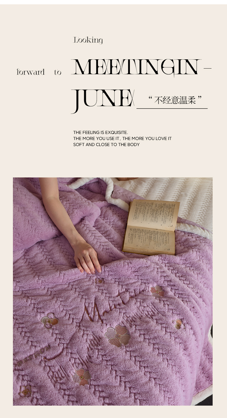 (总)鑫喜莱家纺 2025新款A版兔绒B版牛奶绒床盖绣花系列单件床褥垫软床垫床盖(三件套重量8.5斤),典雅-丁香紫,典雅-天兰,典雅-奶白,典雅-藕粉,包装