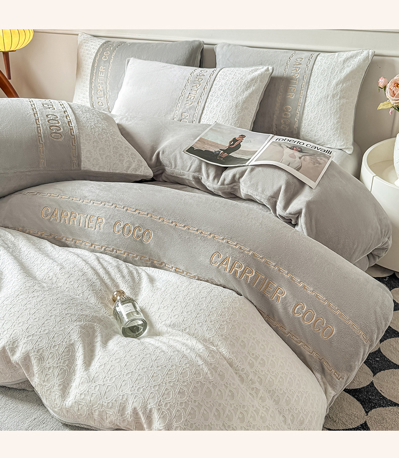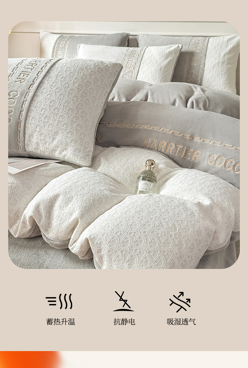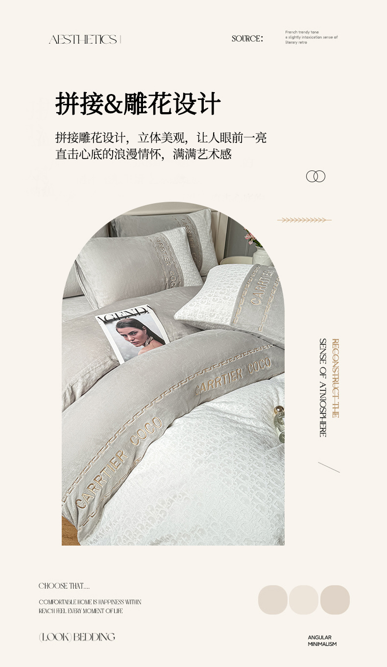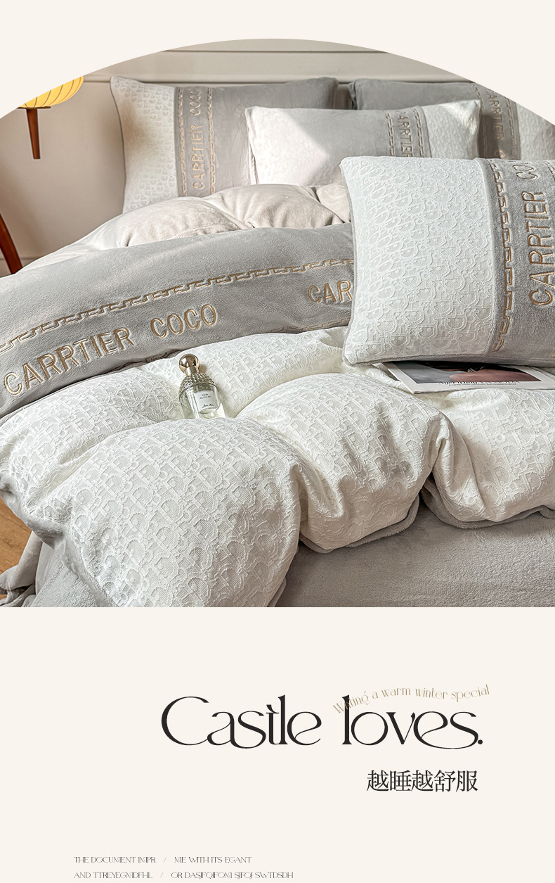 当前位置: 91家纺网 > 商品网购 > 床品套件 > 四件套 > 牛奶绒四件套 > 灰鲸 2025新款牛奶绒拼接刺绣雕花套件-露娜 露娜-纳多灰