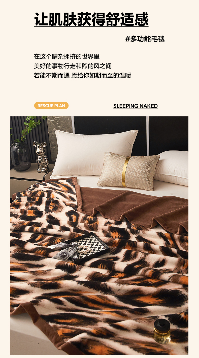 2025新款仿水貂绒兔毛绒雪棉绒云貂绒拉舍尔双层复合毛毯子 美拉德-蝶豹咖