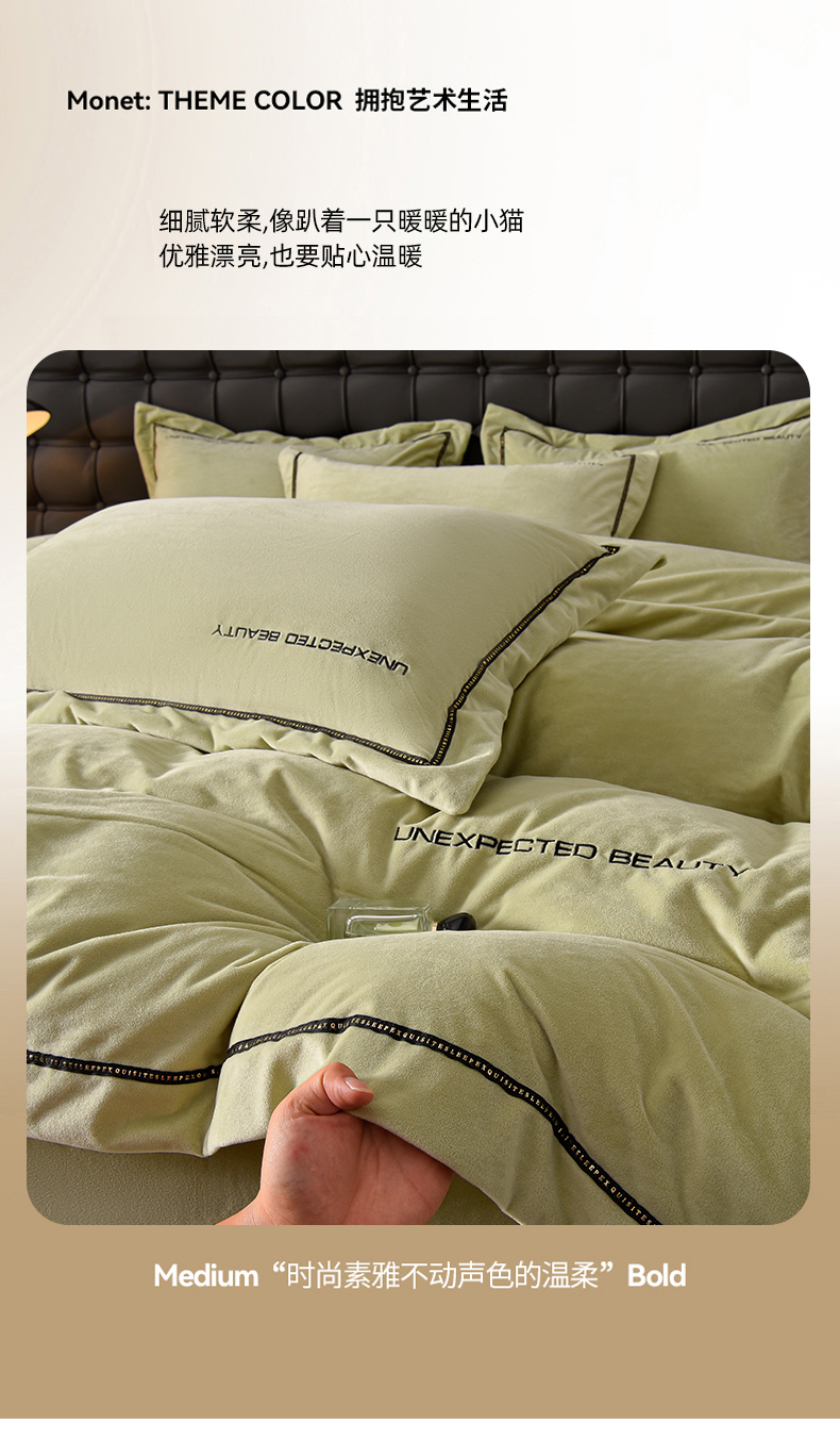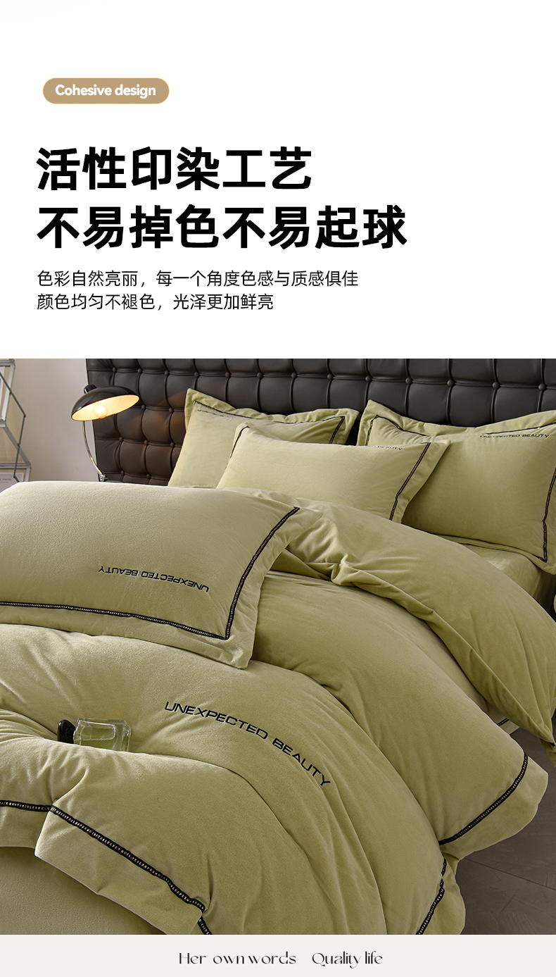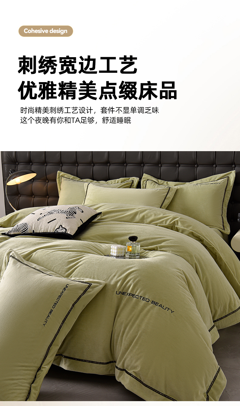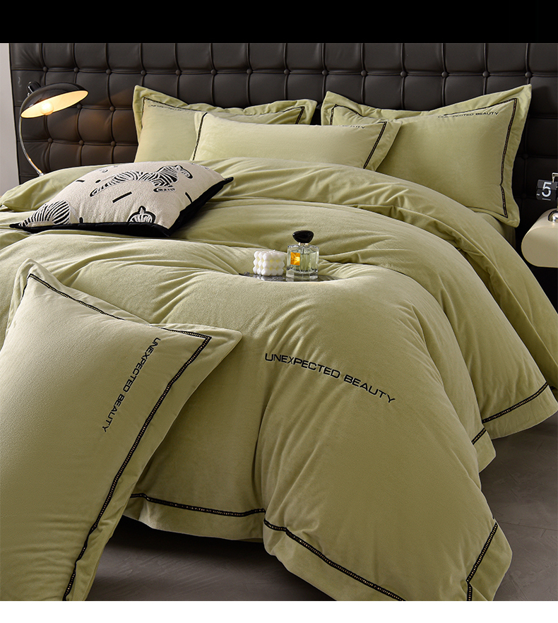 米奈家居 2025新款宝宝绒压线织带四件套-法拉 法拉-元气绿