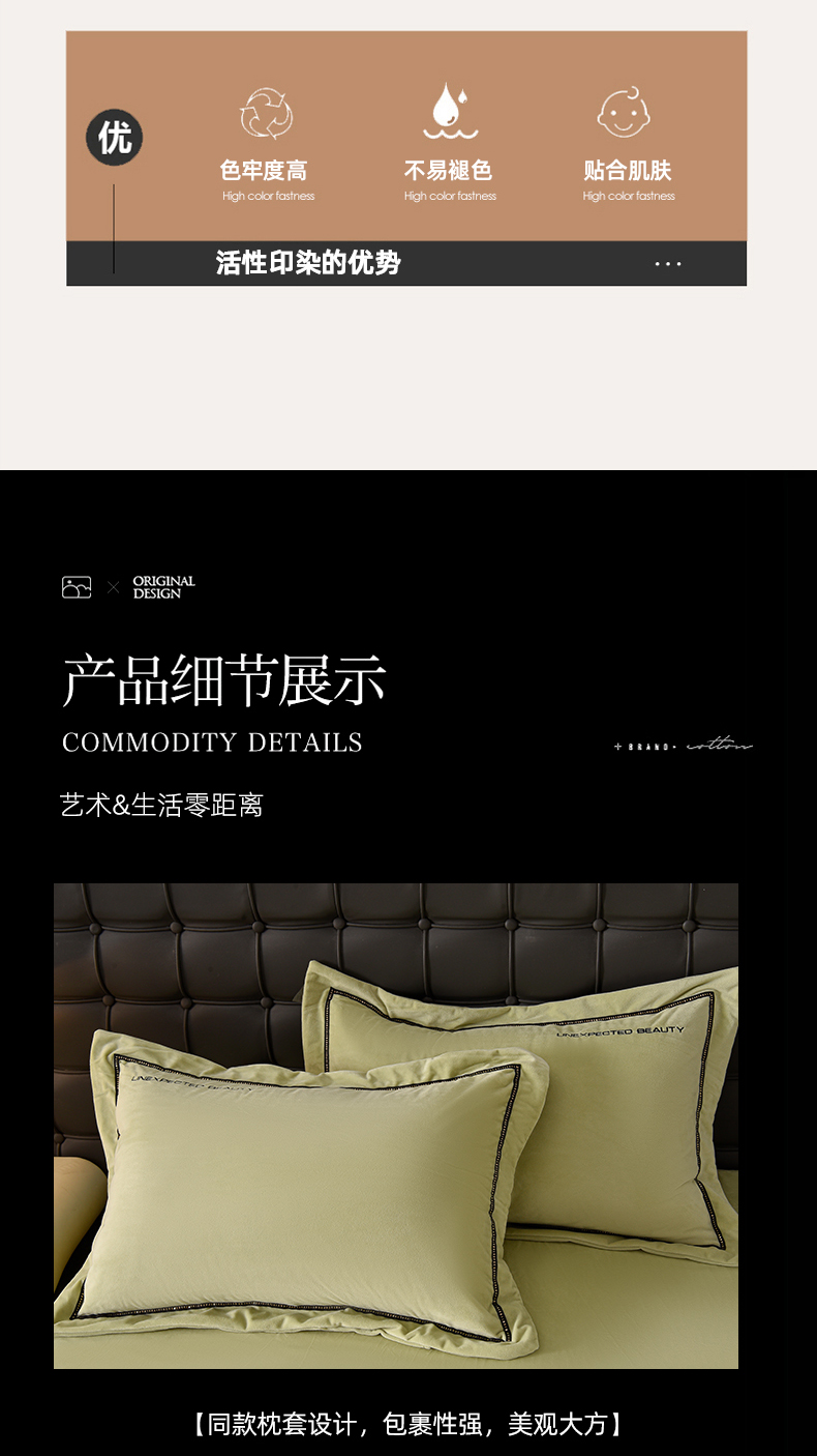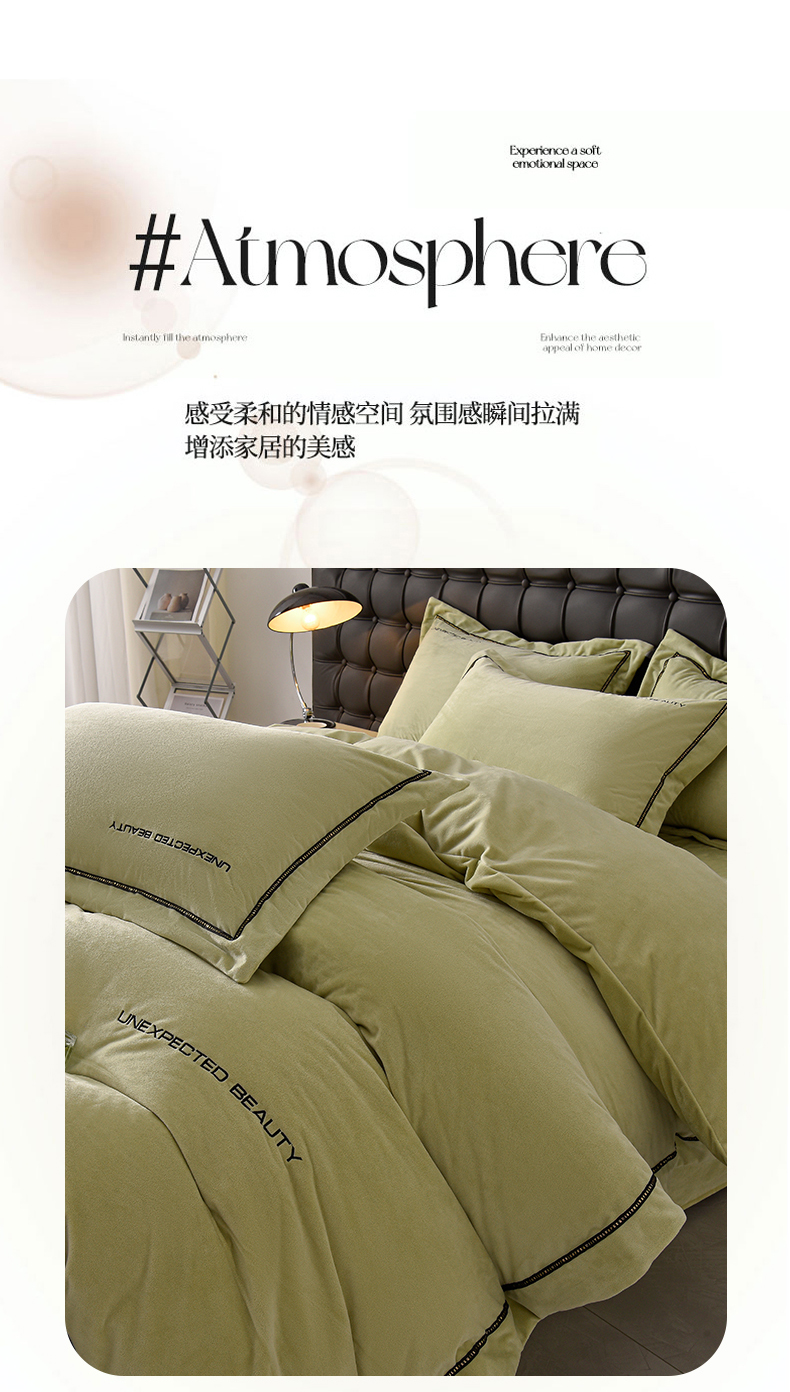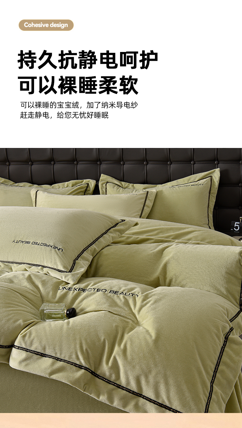 米奈家居 2025新款宝宝绒压线织带四件套-法拉 法拉-元气绿