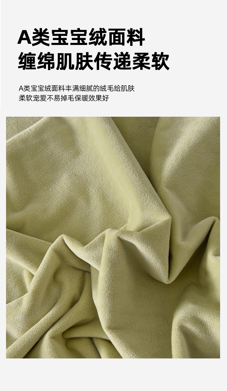 商品名称:米奈家居 2025新款宝宝绒压线织带四件套-法拉 法拉-元气绿