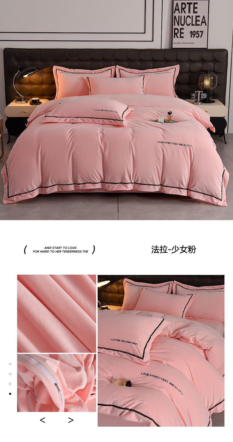 (总)米奈家居 2025新款宝宝绒压线织带四件套-法拉,法拉-铂金灰,法拉-梦幻紫,法拉-奶昔白,法拉-少女粉,法拉-深海蓝,法拉-元气绿