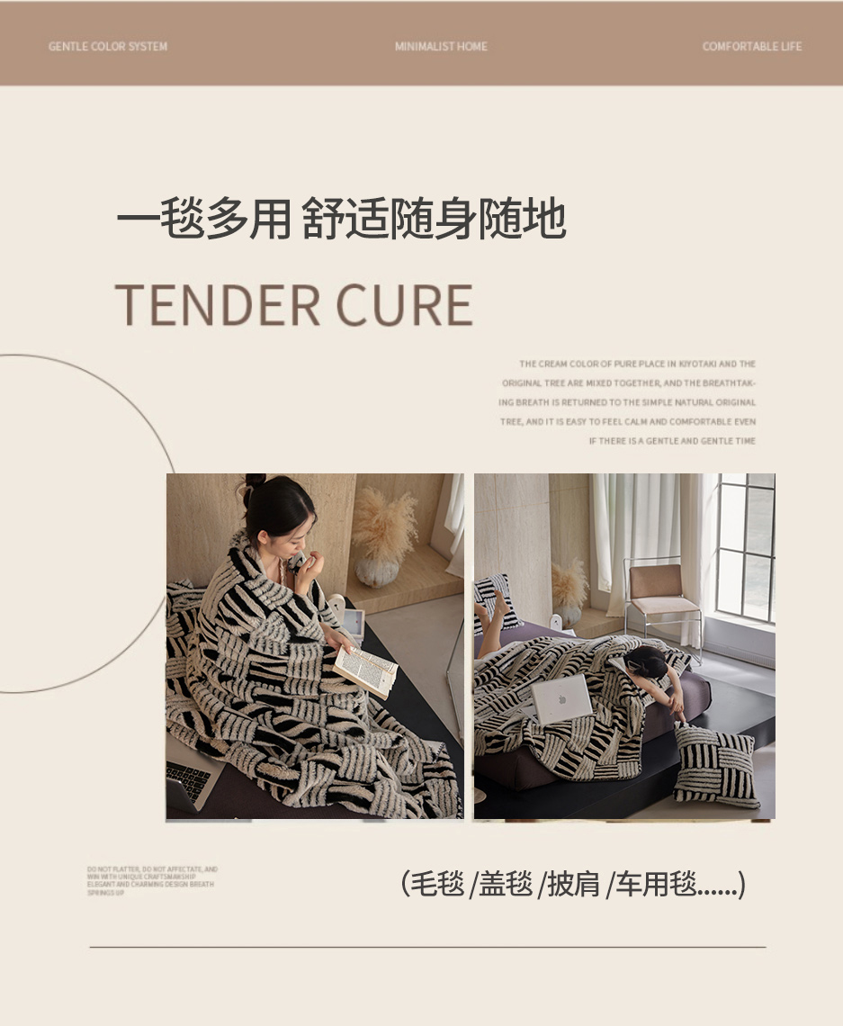 (总)宜代光年 2024新款520g全消光牛奶绒迪奥格盖毯,卡其,米白,柔粉,雾灰