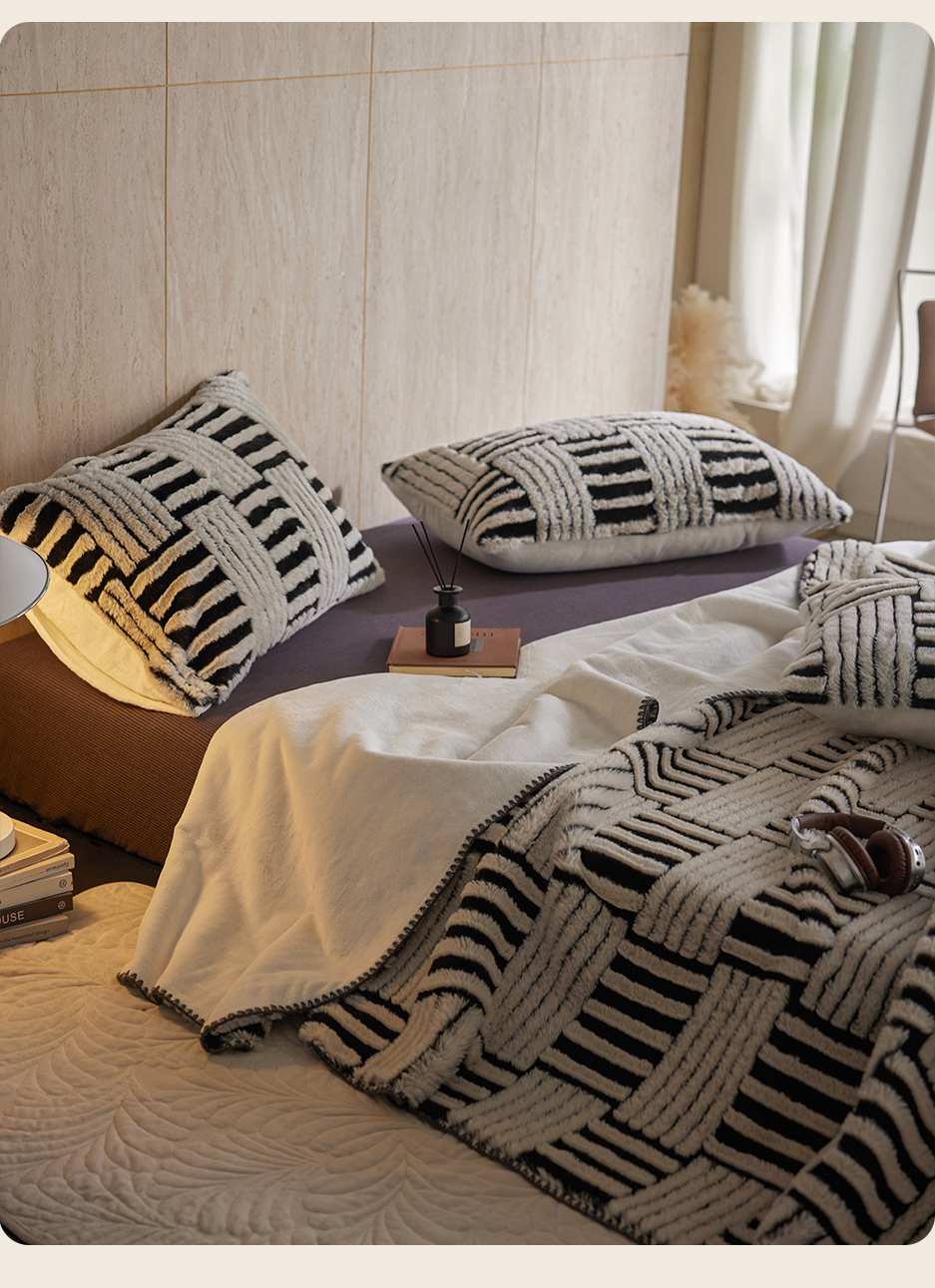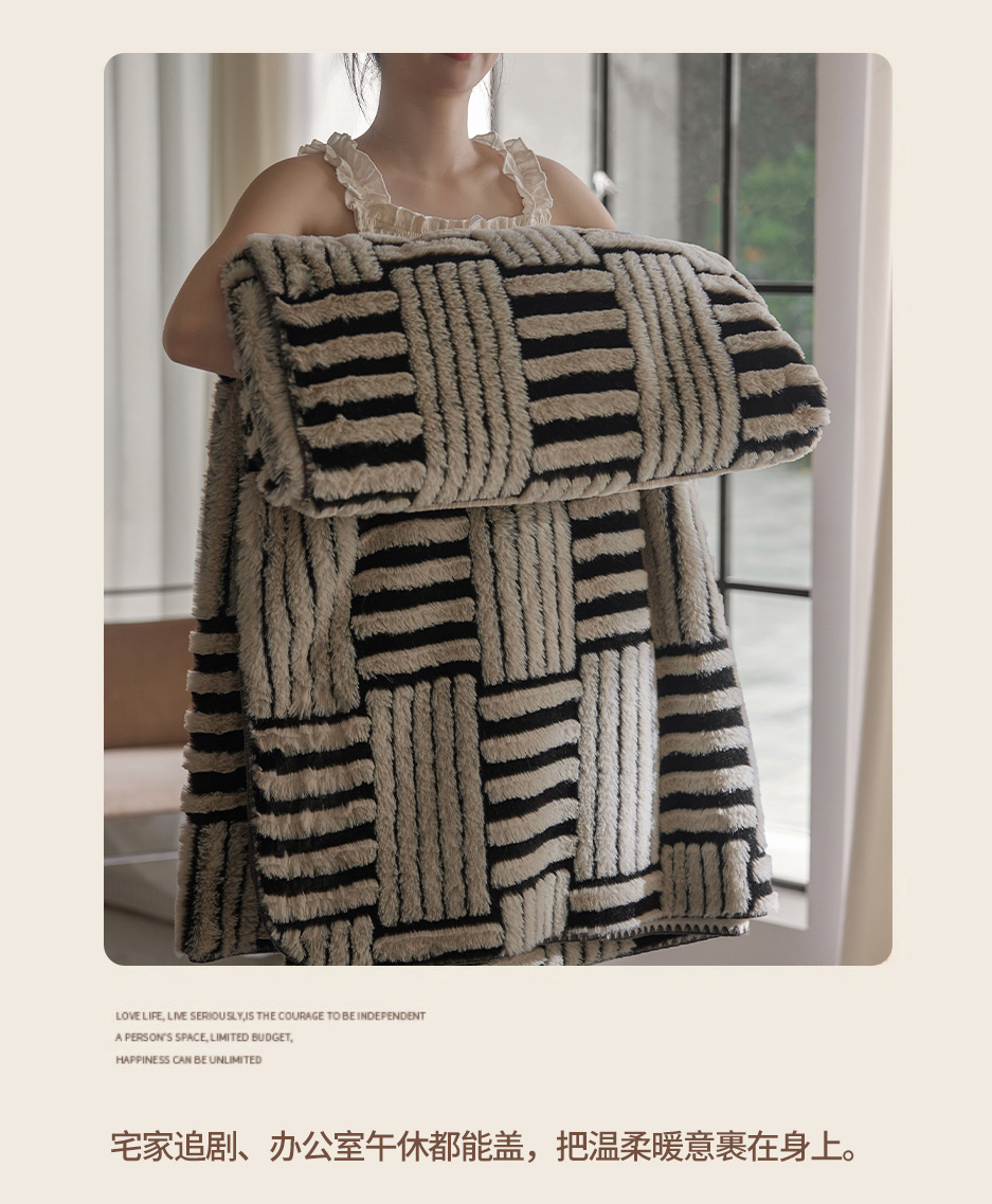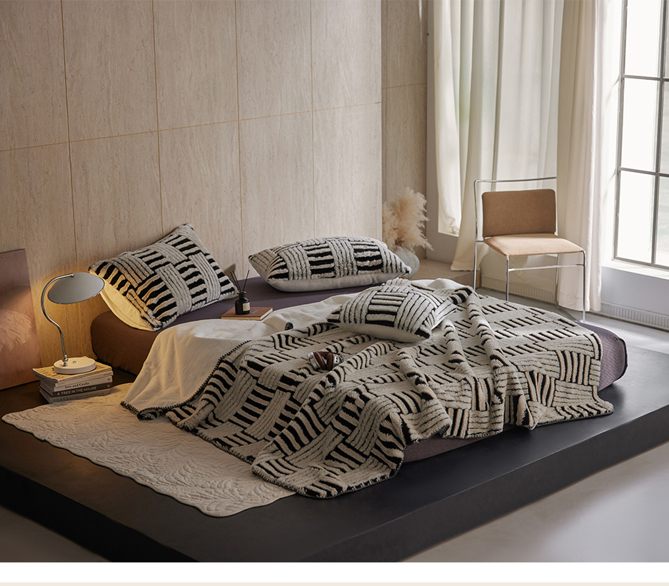 宜代光年 2025新款云貂绒色织提花双层毯-场景一 素影织梦-白
