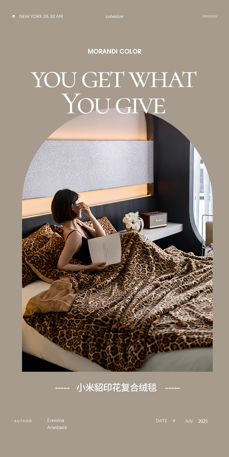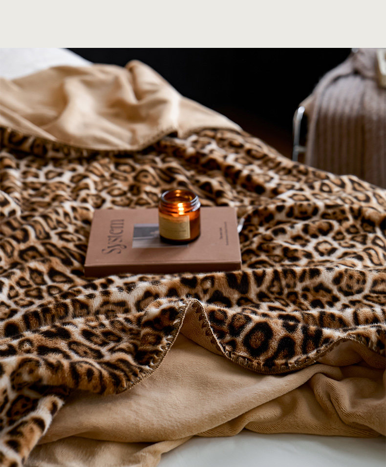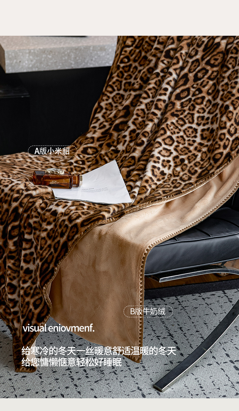 宜代光年 2025新款小米貂印花复合绒毯毯子-系列二 绒毯(豹影-奢棕)