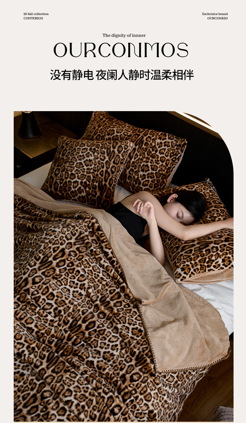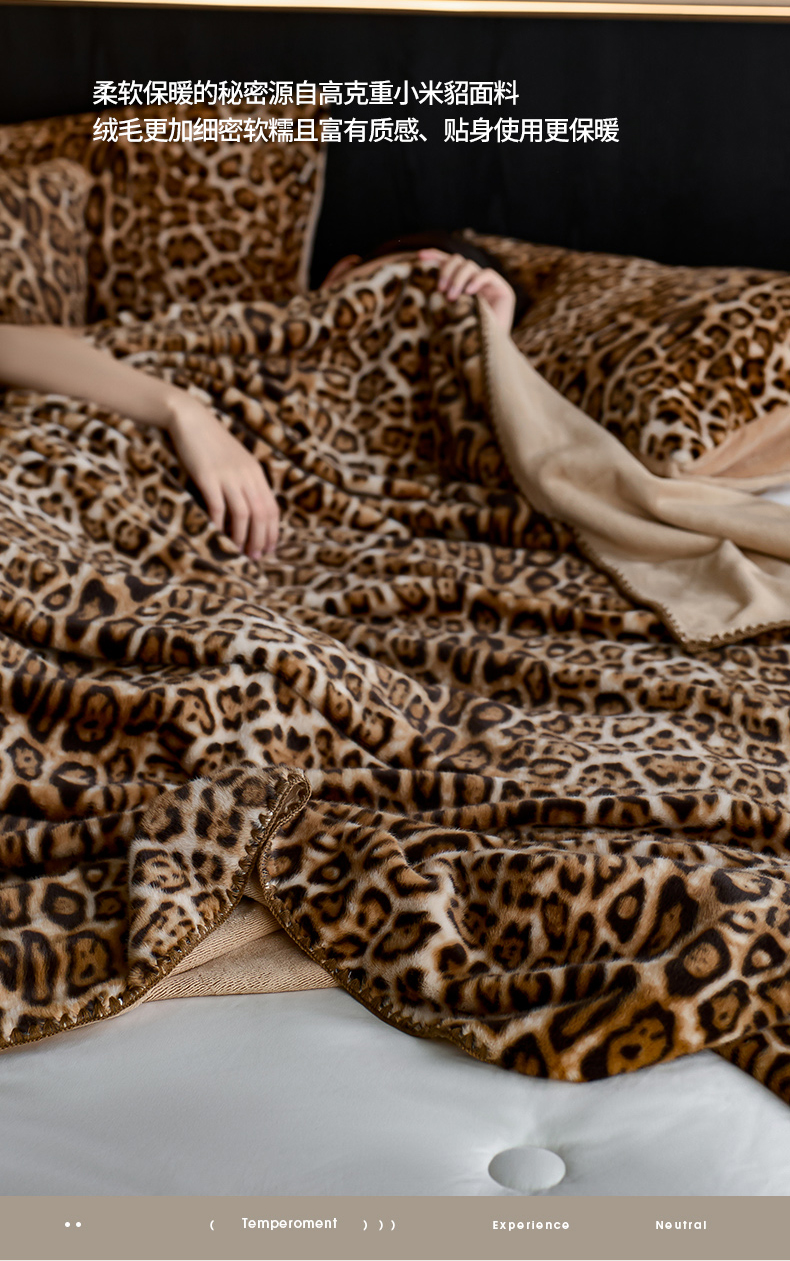 商品名称:宜代光年 2025新款小米貂印花复合绒毯毯子-系列二 绒毯(豹影-奢棕)