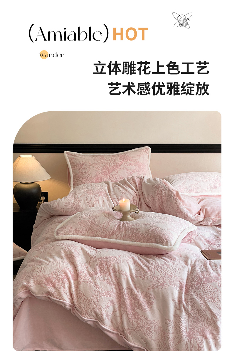 (总)宜代光年 2024新款小米貂牛奶绒雕花四件套,繁花似锦-咖,繁花似锦-灰,繁花似锦-粉,丛林-粉,丛林-咖,繁花似锦-绿,花丛小兔-粉,魔法森林-粉,叶曼-绿