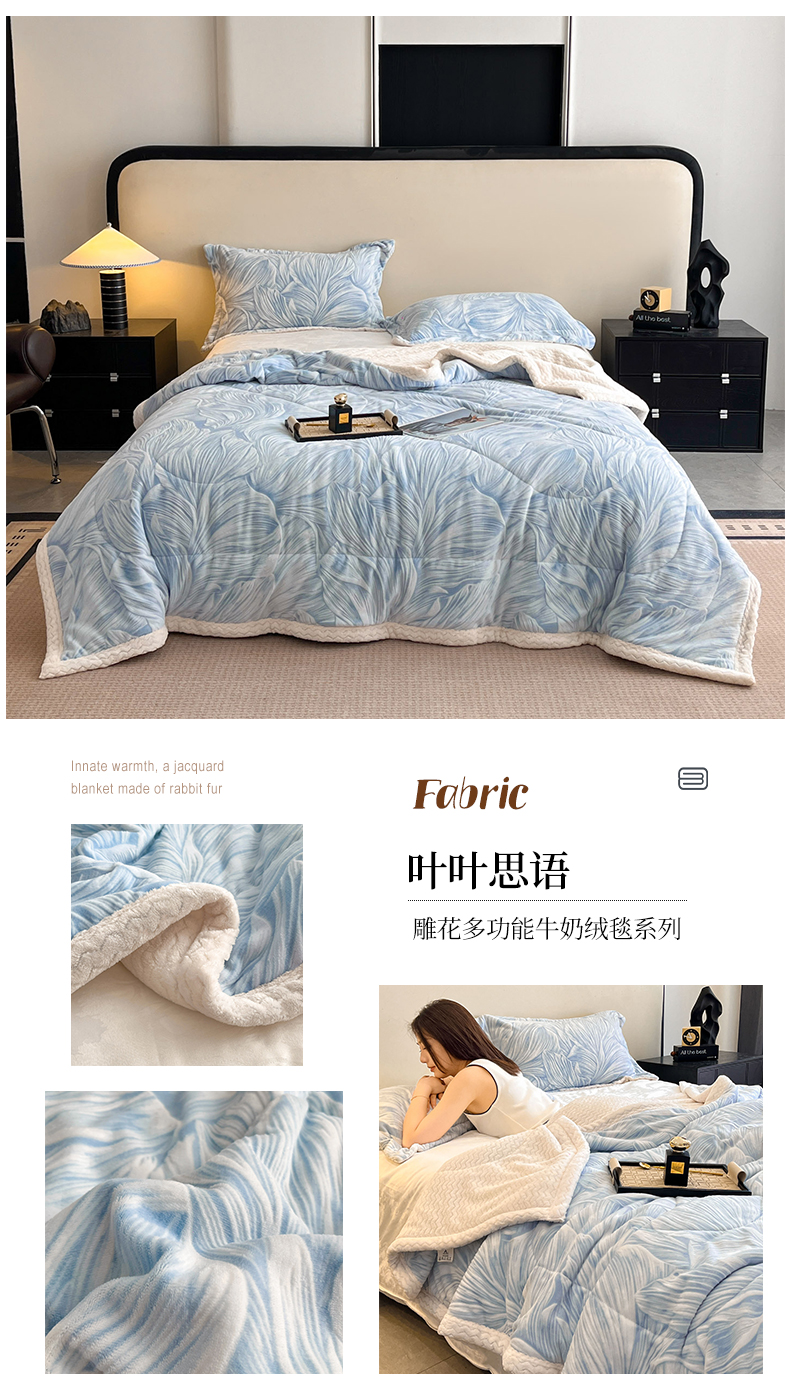 商品名称:宜代光年 2025新款牛奶绒立体雕花夹棉多功能毯 花枝菁语-蓝