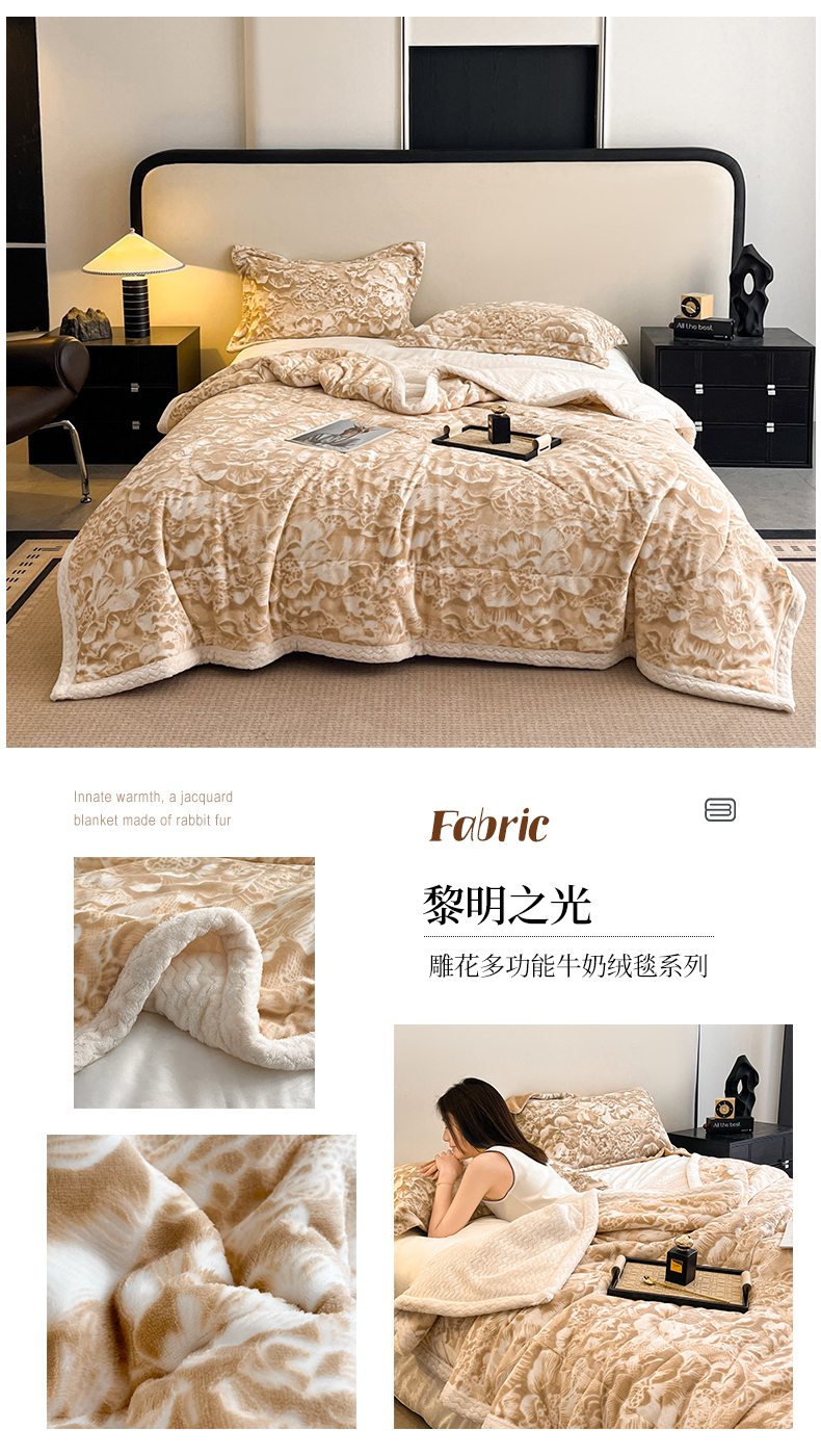 (总)宜代光年 2025新款云貂绒色织提花双层毯-场景二,素影织梦-白,素影织梦-咖