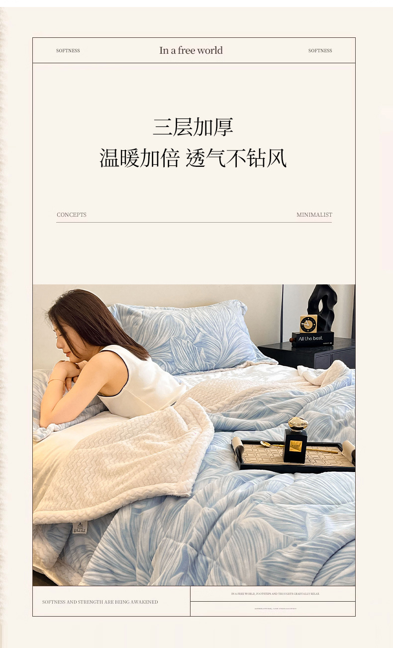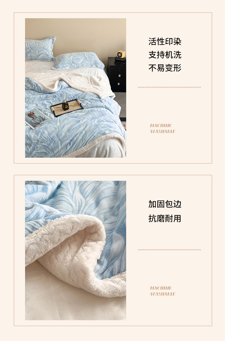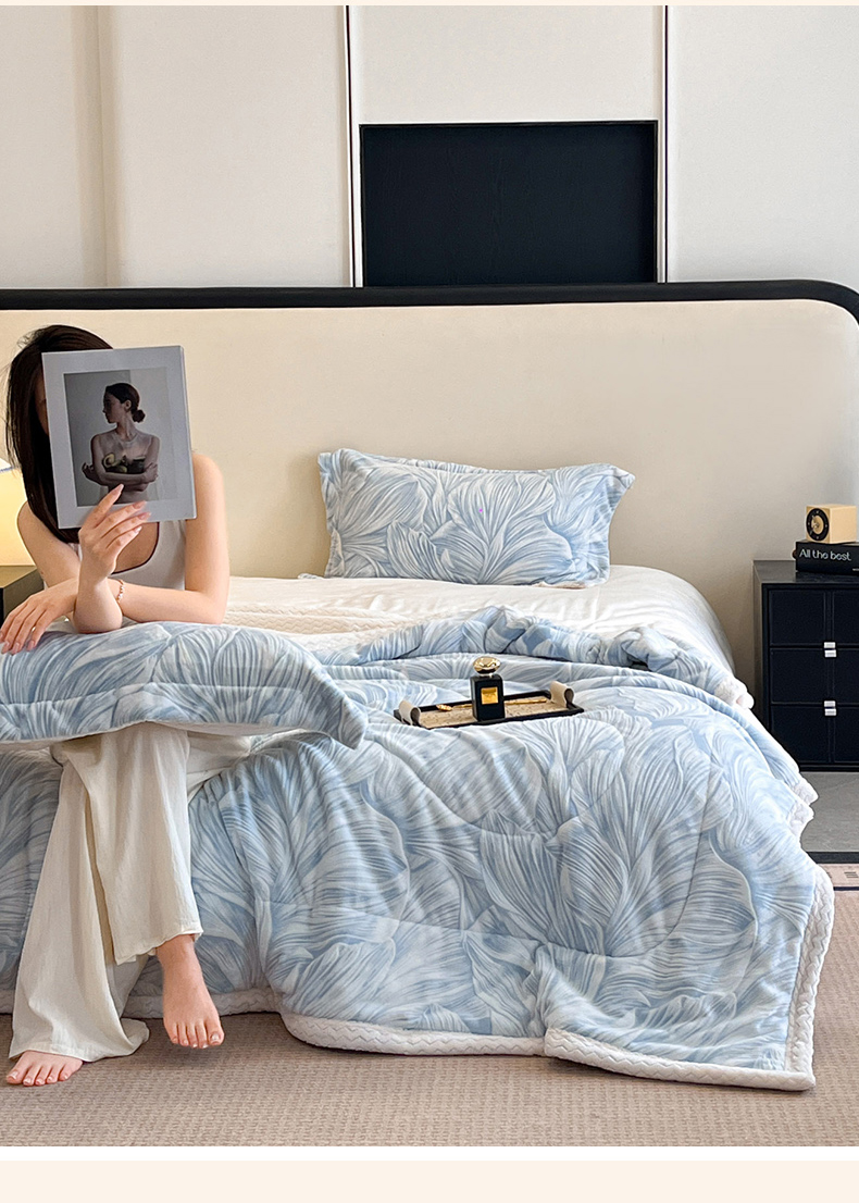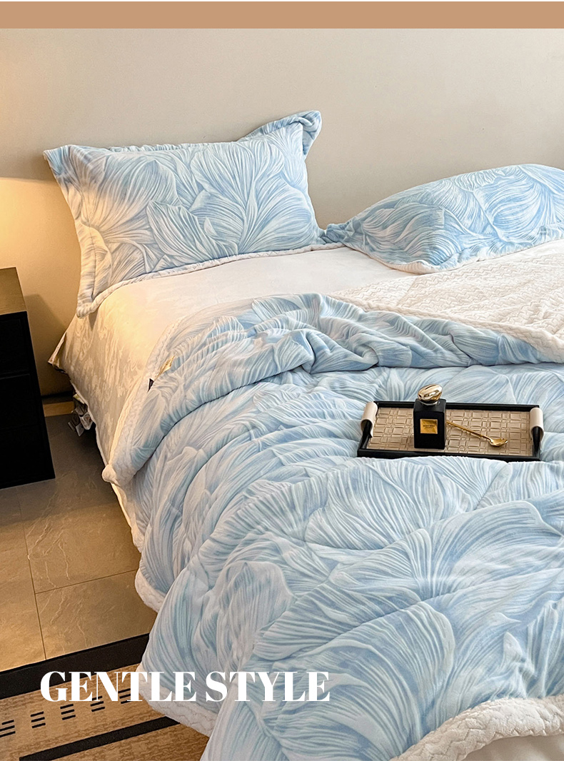 宜代光年 2025新款牛奶绒立体雕花夹棉多功能毯 叶叶思语