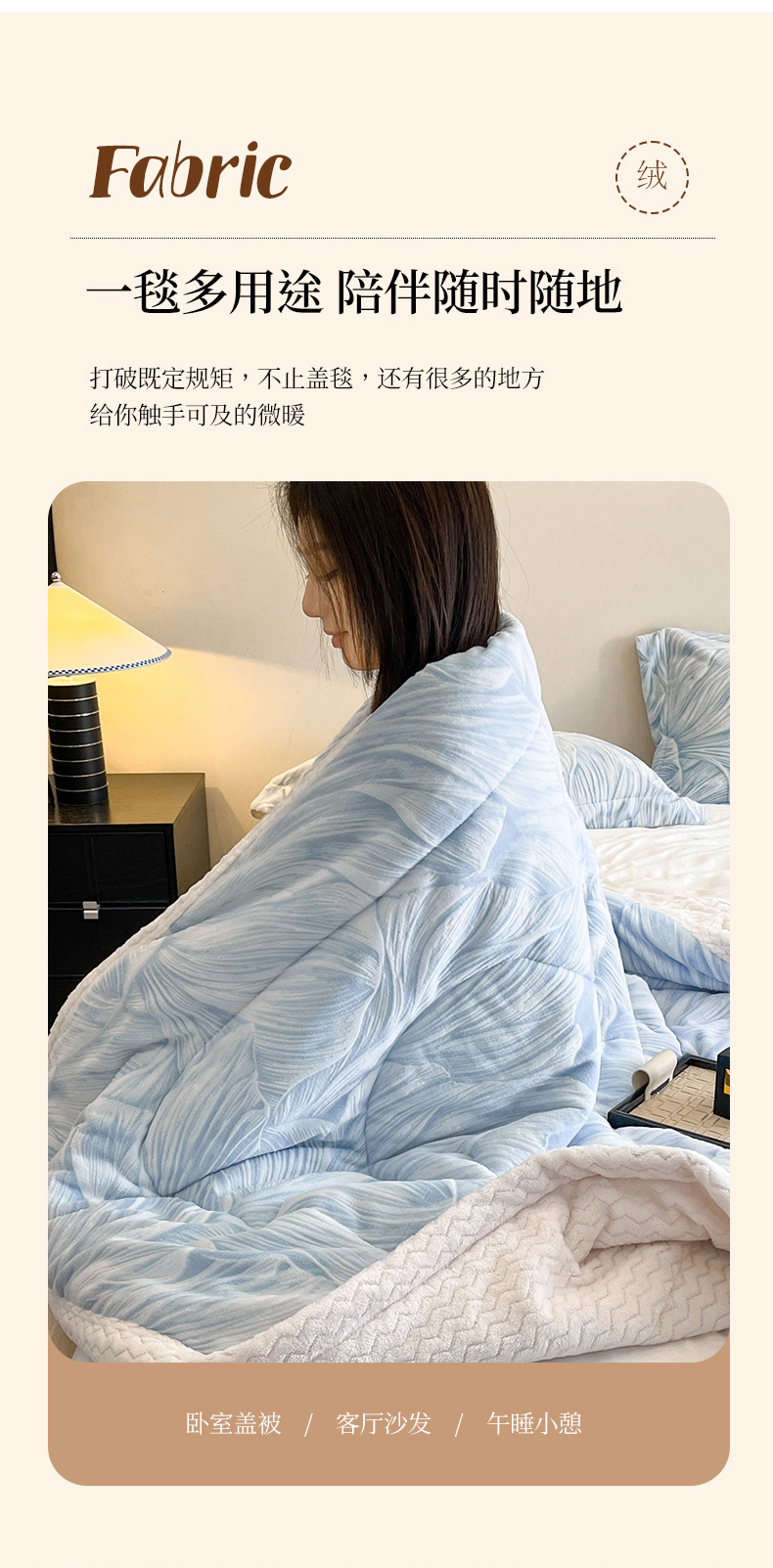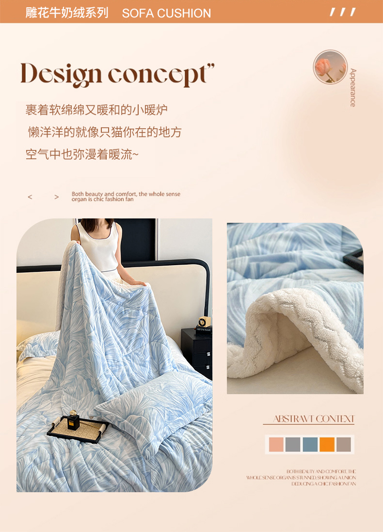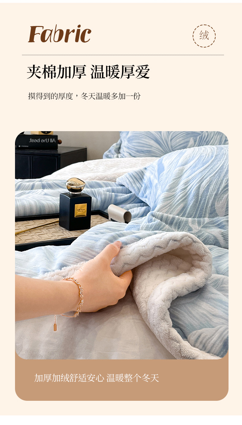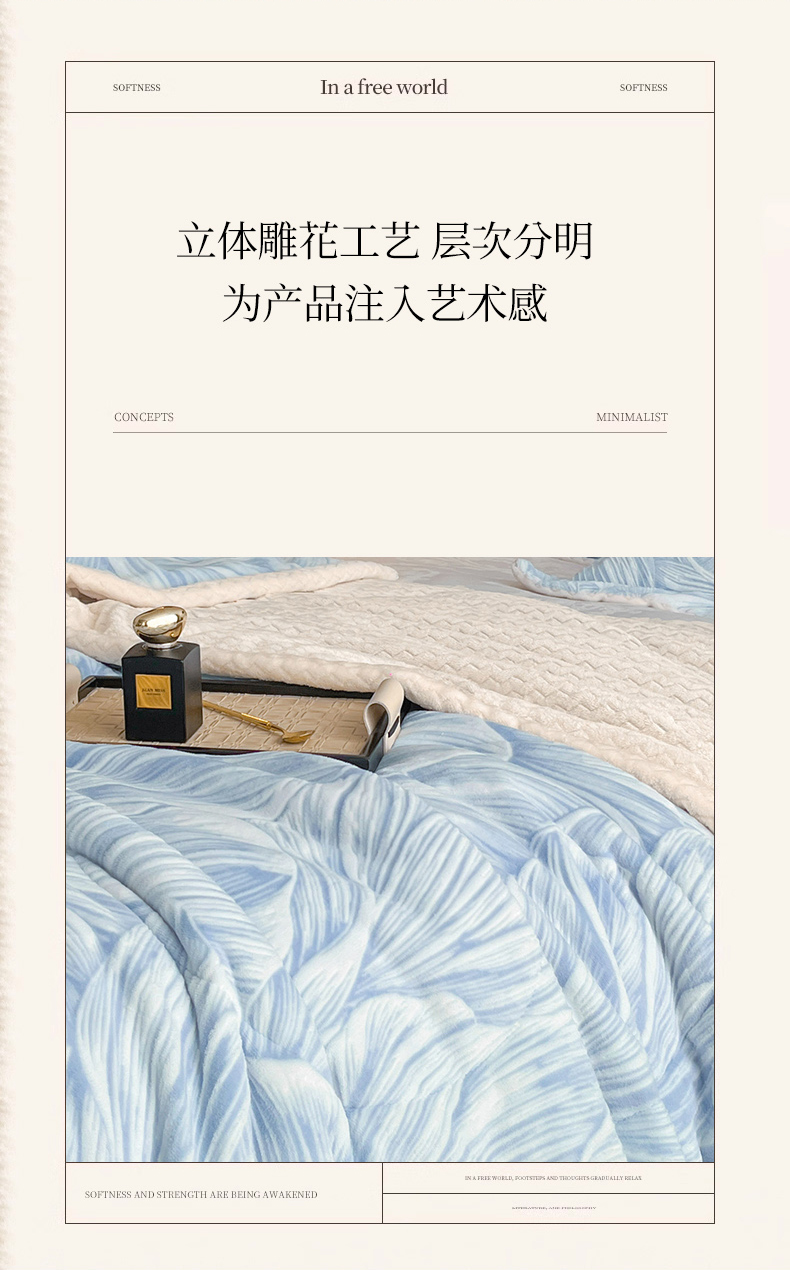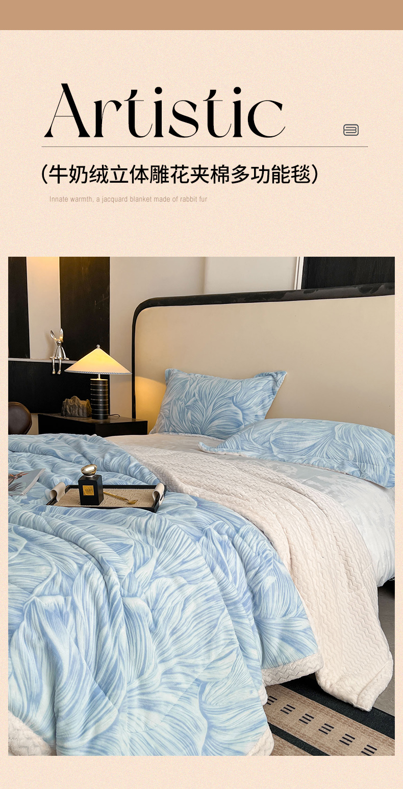 商品名称:宜代光年 2025新款牛奶绒立体雕花夹棉多功能毯 叶叶思语